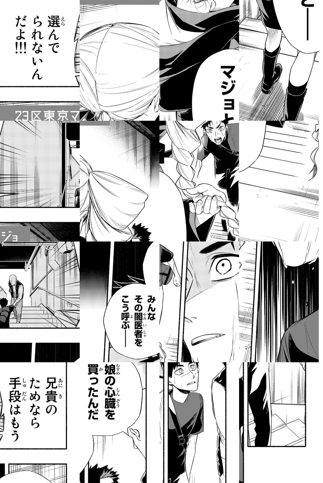 台東区で暮らす高校生のハナコには、6年前の火事以来意識不明の兄がいた。すべてを失ってでも兄を助けたいハナコの元にもたらされた「現代医療の先を行く、マジョと呼ばれる闇医者」の情報。それは東京23区に一人ずついる「マジョ」と「契約者」による生き残りをかけた戦いの始まりであった。