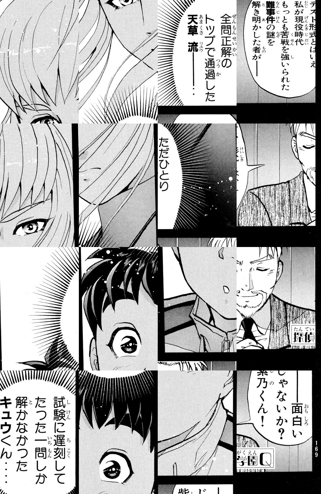 「世界一の探偵になる!」その願いをかなえるべく、キュウが挑むのは、伝説の名探偵・団守彦が主催する“探偵学園”の型破りな入学試験! 瞬間記憶能力者メグ、野生児キンタ、IT小僧カズマといった強力なライバルと共に、数々の超難解な謎を解き明かせ! 最高の探偵養成クラス「Qクラス」に入るために!!