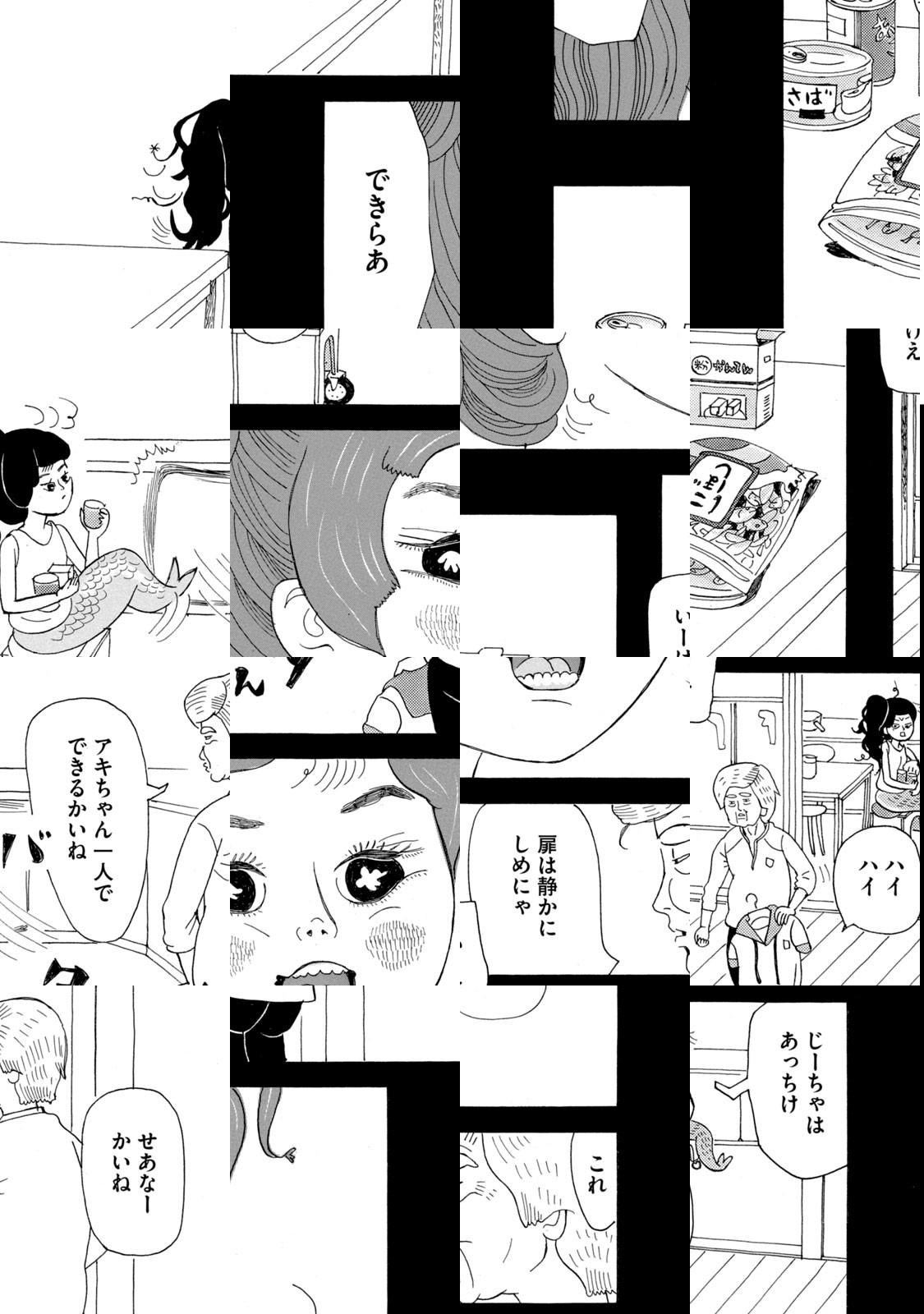 ある日、海岸を散歩していたおじいさんと愛犬のフジオが見つけたのは、なんと人魚の赤ちゃんでした。アキちゃんと名付けたものの、奥さんを早くに亡くして子供のいなかったおじいさんには、子育てのことは何にもわかりません。しかも相手は人魚の赤ちゃん! 何を食べさせたらいいのか、人魚の生態なんてわからん! そんなおじいさんの悪戦苦闘、孤軍奮闘の人魚の子育てが始まります!!