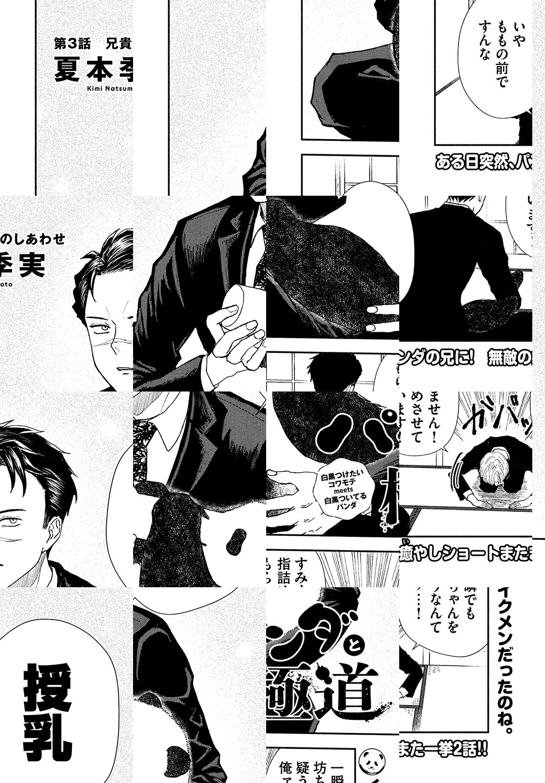 竹ノ虎組(たけのこぐみ)の跡継ぎ・真笹斗(まさと)のもとに、ある日突然やってきた妹。その妹は、なんとパンダ! その日から、真笹斗はパンダの「もも」にメロメロ。無敵の可愛らしさを誇る、パンダの癒やしショート。