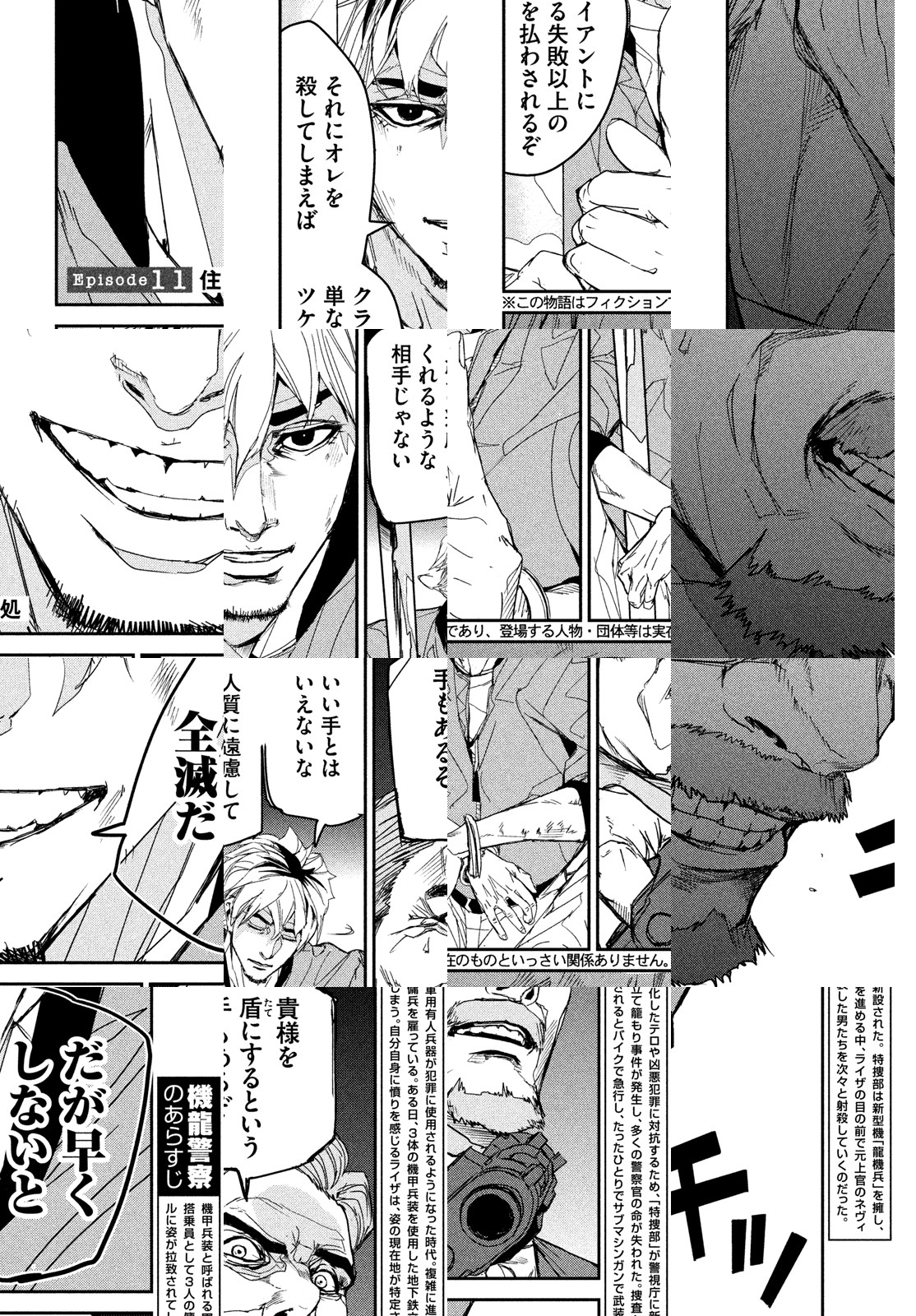 テロや民族紛争の激化に伴い、機甲兵装と呼ばれる軍用有人兵器が普及した時代。 組織犯罪が凶悪化、大規模化するなか、元外務官僚の沖津旬一郎をトップとする特殊部局「特捜部」が警視庁に新設された。 特捜部は最新鋭の機甲兵装「龍機兵」を擁し、搭乗員として3人の傭兵を雇っているため、警察組織内から「裏切り者」と疎んじられる。そんな特捜部メンバーが、国内外を揺るがす凶悪な犯罪に立ち向かう!!