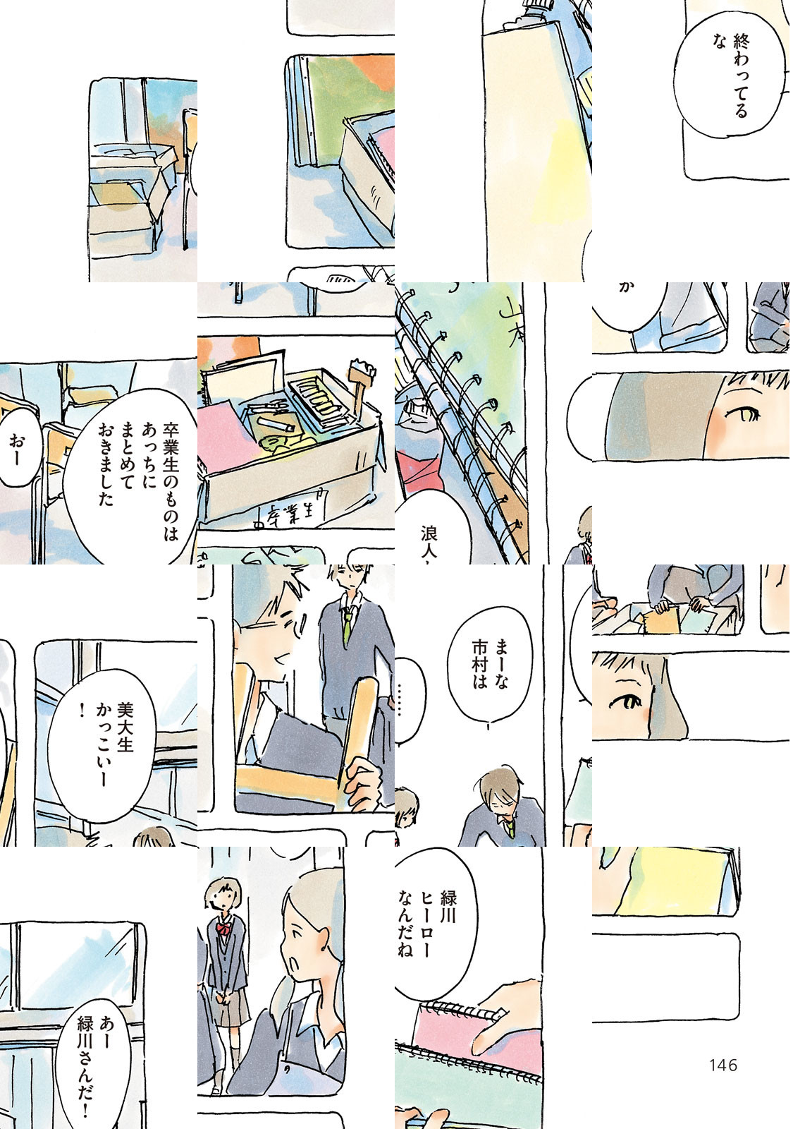 市村みかこ、17歳。席替えで隣に座った緑川はいまどき赤えんぴつを使う変な奴。最初は緑川のことを何とも思ってなかったみかこだが、たまたま二人とも「リロン」というバンドが好きだったことから、二人の関係は少しずつ変わり始める…。オールカラーで紡ぐ人生17年目・女子高生みかこの日々。