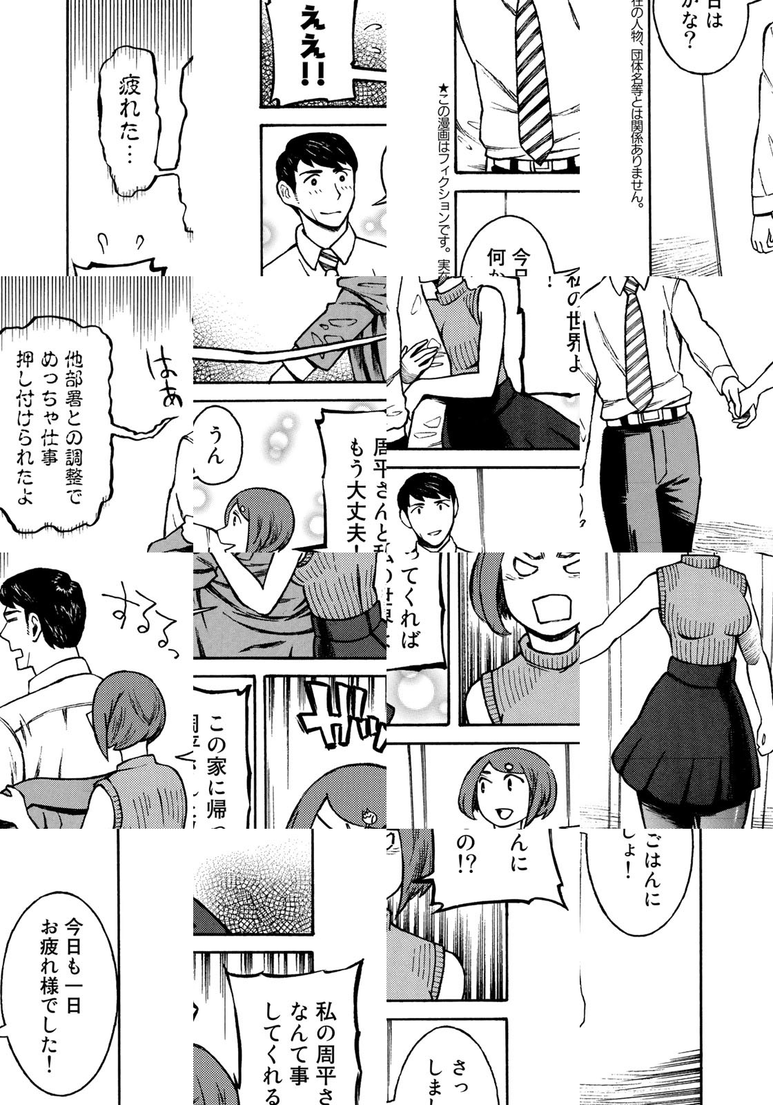 中間管理職の周平さんにはかわいい嫁がいる。会社でどんなにストレスをためても、嫁の笑顔、嫁とのたわいのない会話、嫁からのさりげない気遣い等々、癒しのオンパレードで明日への活力をばっちりチャージ。そんな非の打ちどころのないお嫁さんには、二人の関係を根底から覆す秘密があるのだった…。