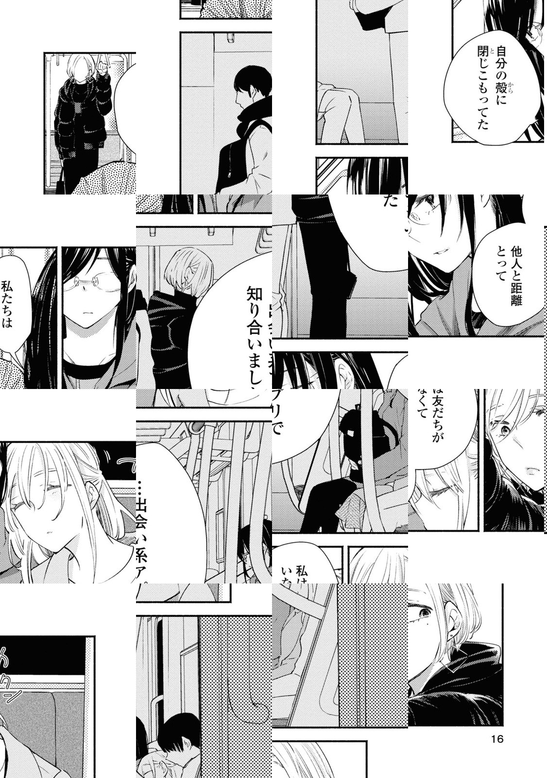スクールカースト低めの女子校生・綾は 出会いを求めてマッチングアプリを使い オトナな”女性”・KUROと連絡先を交換することに成功する。 直接あったことのない二人は今日の食事や、趣味の話。そして自撮りを交換したり……。 そんなある日、KUROの様子がおかしいことを不安に思い、 彼女が住んでいるマンションにはじめて会いに行くが──。