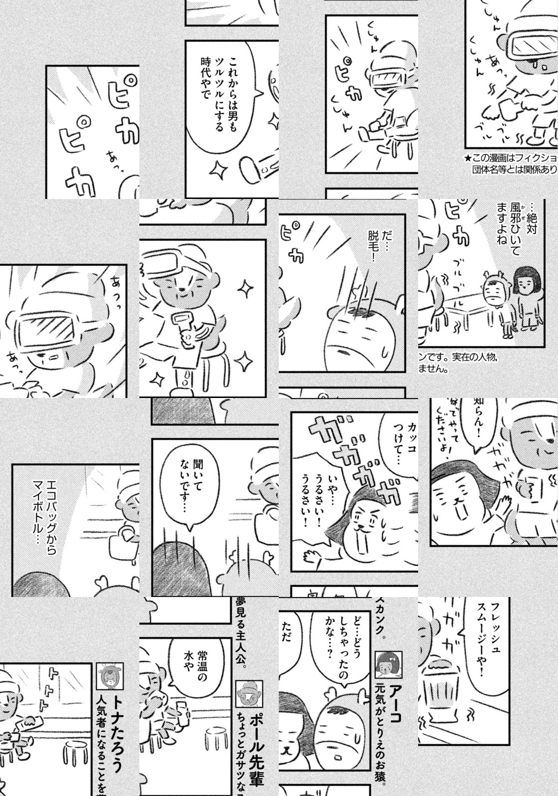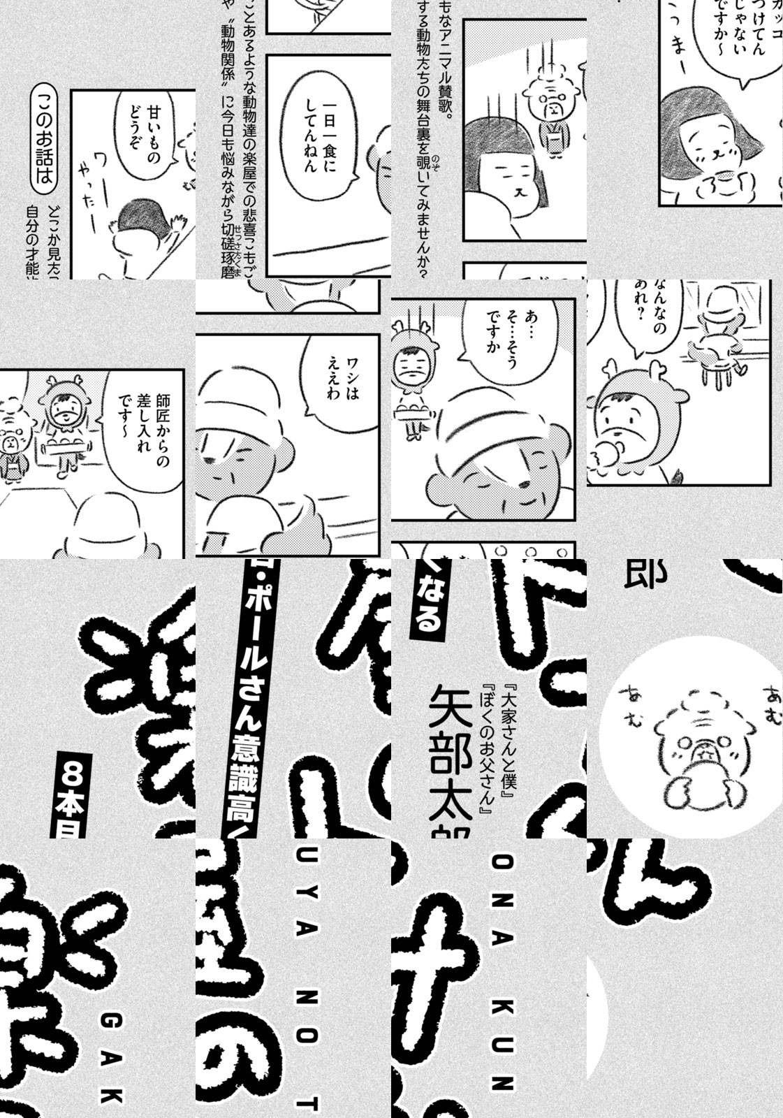 先輩にはいびられ、後輩には舐められ、お客さんには気づかれない主人公・トナカイのトナたろう、ちょっとガサツでデリカシーのないスカンクのポール先輩、元気すぎるお猿のアーコ、大人気のパンダくんなど、どこか見たことあるような動物たちの楽屋での悲喜こもごもなアニマル賛歌。自分の才能や“動物関係”に今日も悩みながら切磋琢磨する動物たちの舞台裏を覗いてみませんか?