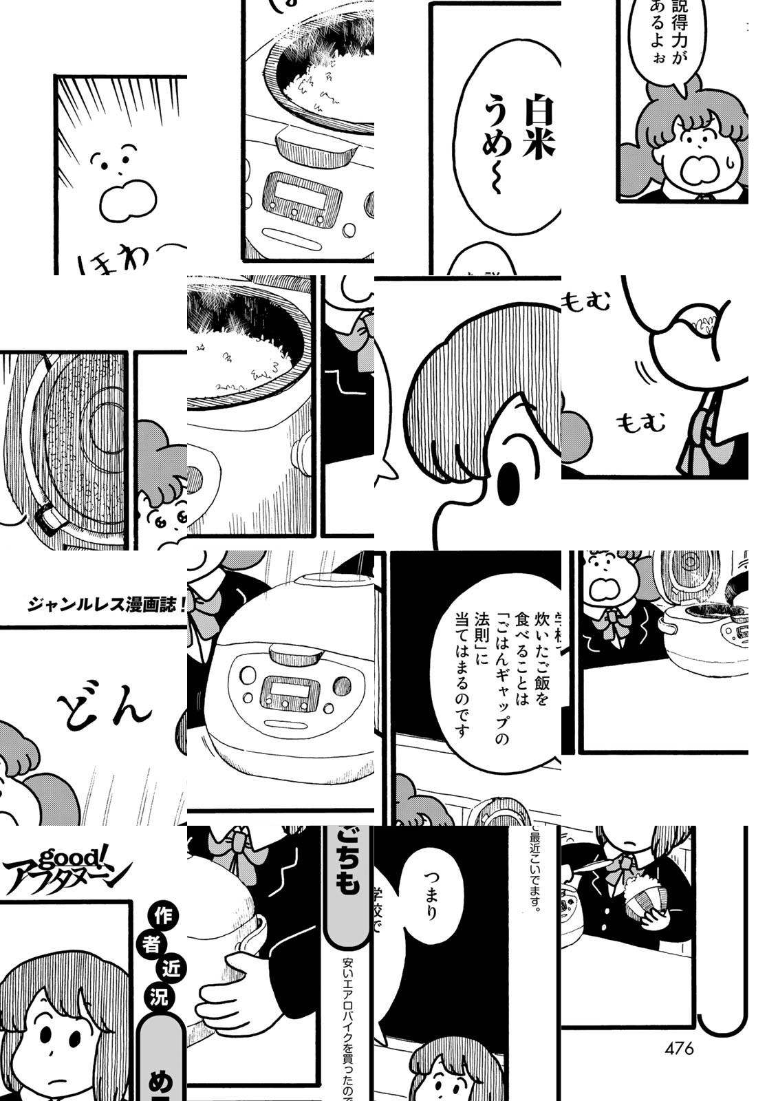 とある高校の教室の隅っこでちょっぴり変な女子高生が全力で何かに取り組むお話。教室で餃子を焼いたり、コーヒー豆を挽いたり。時には〝おでん〟たちの葛藤を妄想したり…。ゆるく描かれた3人の女子高生が教室の隅で織りなすシュールギャグ漫画!デフォルメされた可愛らしいキャラクターが織りなす日常の中に突然登場する写実的な絵柄がクセになります。