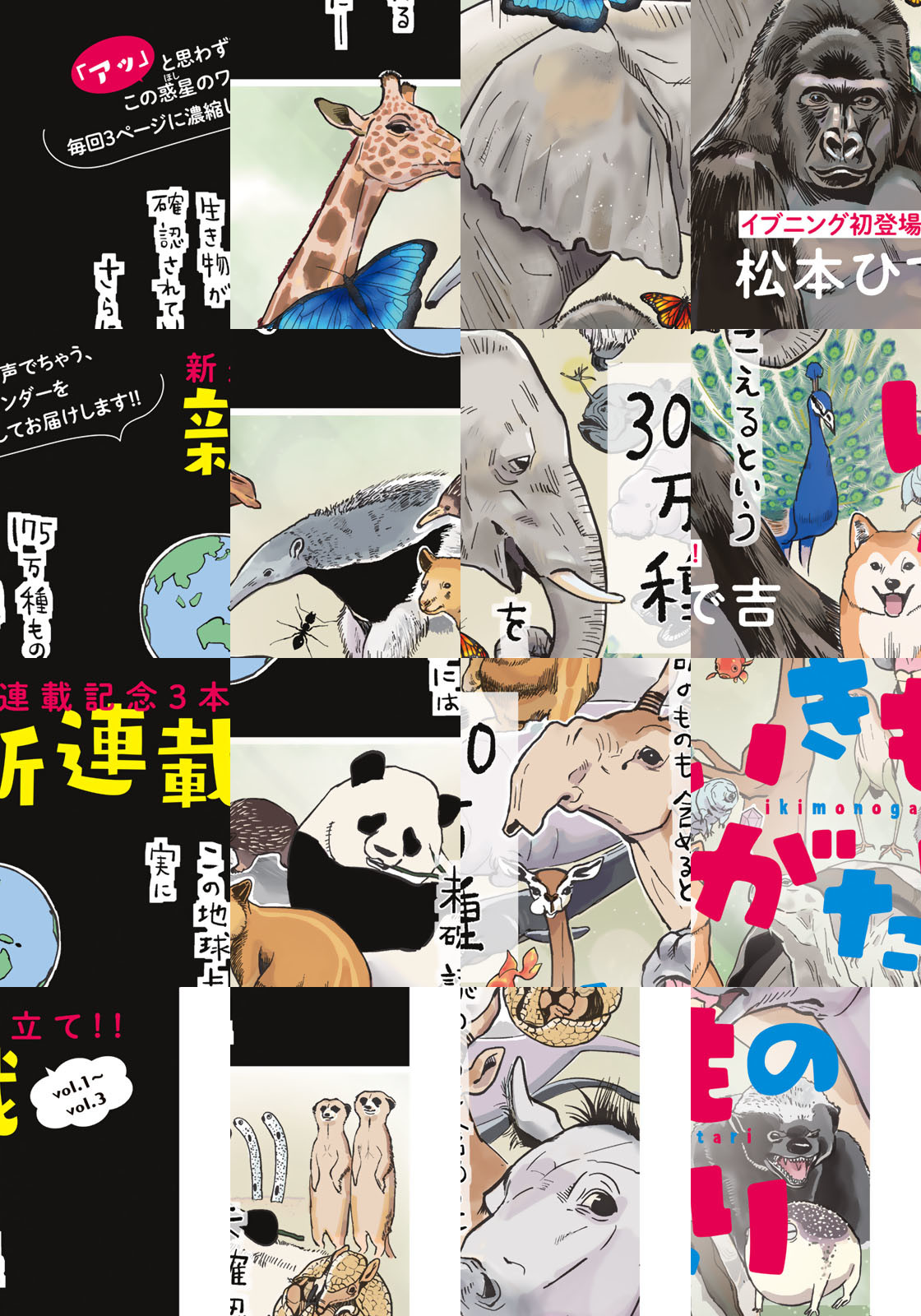 単行本累計100万部突破『犬と猫どっちも飼ってると毎日たのしい』の松本ひで吉がイブニング初登場! 生き物たちの不思議な生態と、それにまつわる人間の奇行を面白おかしく描く。「えっ!?」と驚き「へ~」と感心、この惑星のワンダーをお楽しみください!!