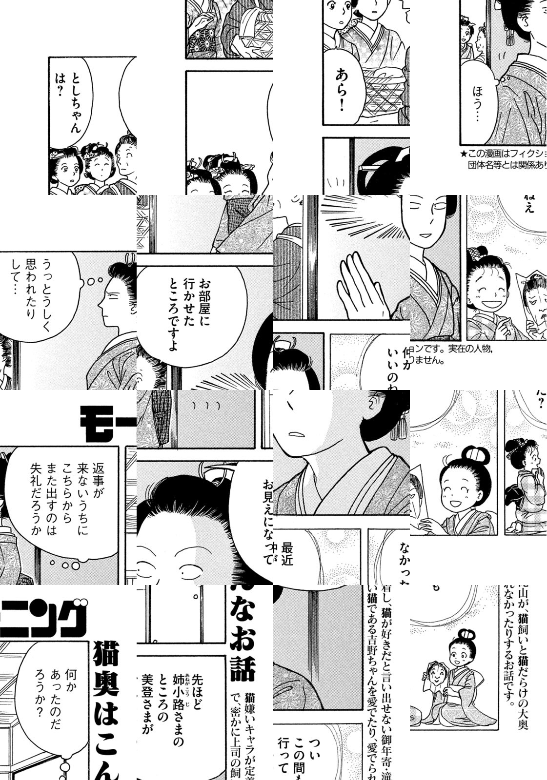 江戸時代。大奥に仕える女性たちの多くは、生涯独身であった。そんな彼女たちが、持てあました時間と愛情を注いだ対象、それは――にゃんと、ネコだった!? 大奥に暮らすオンナとネコの日常を描くほのぼのショート!