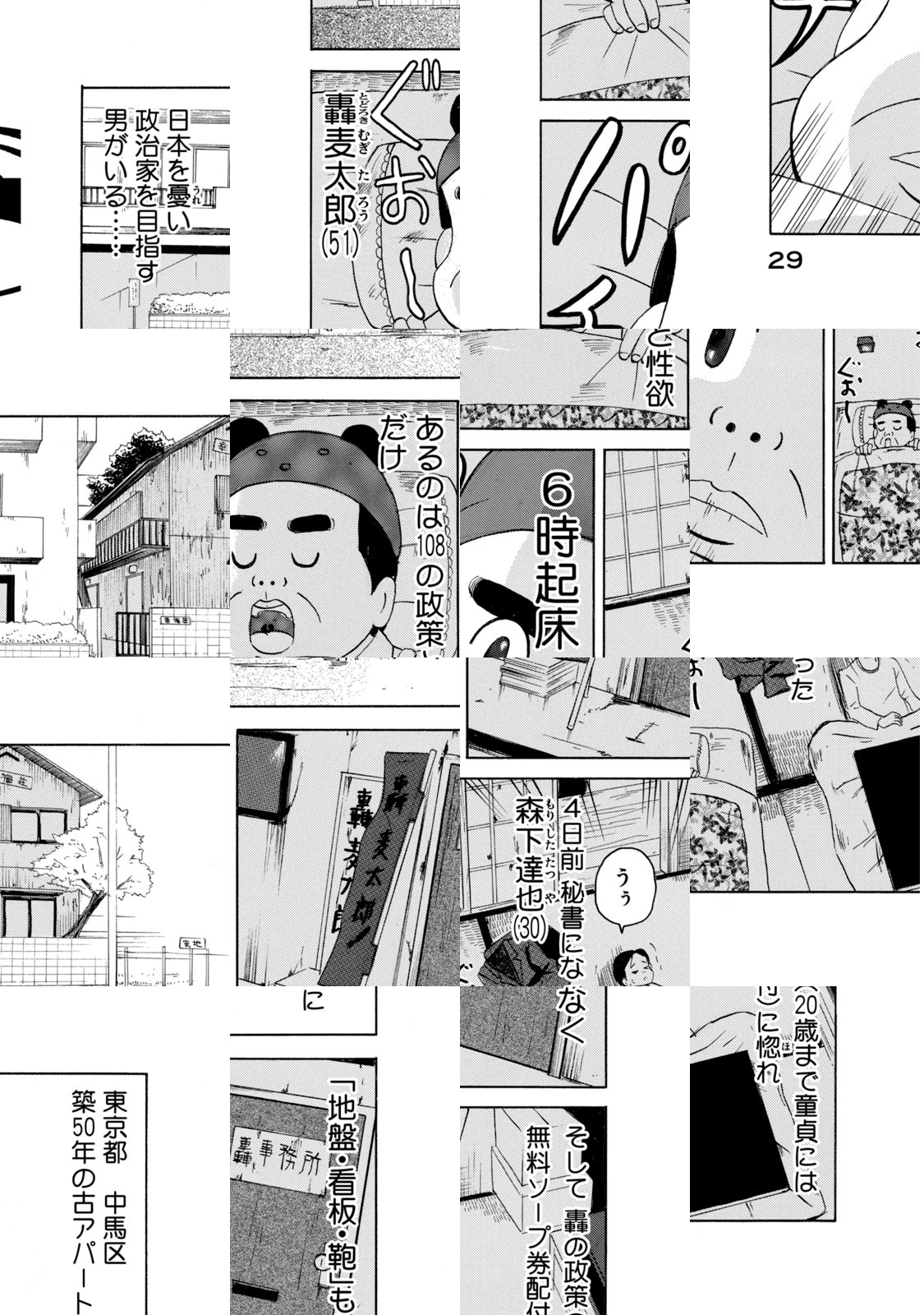 この男、日本を変える!! 「108の政策」を持つ男・轟麦太郎が、ぐはっと吼えて日本社会を立て直す!! AVをこよなく愛する熱い心で政治家を志す、今はまだ、51歳・ザ・無職! 下ネタ満載、笑って泣ける、アフタヌーン発超革命的本格政治漫画!!!