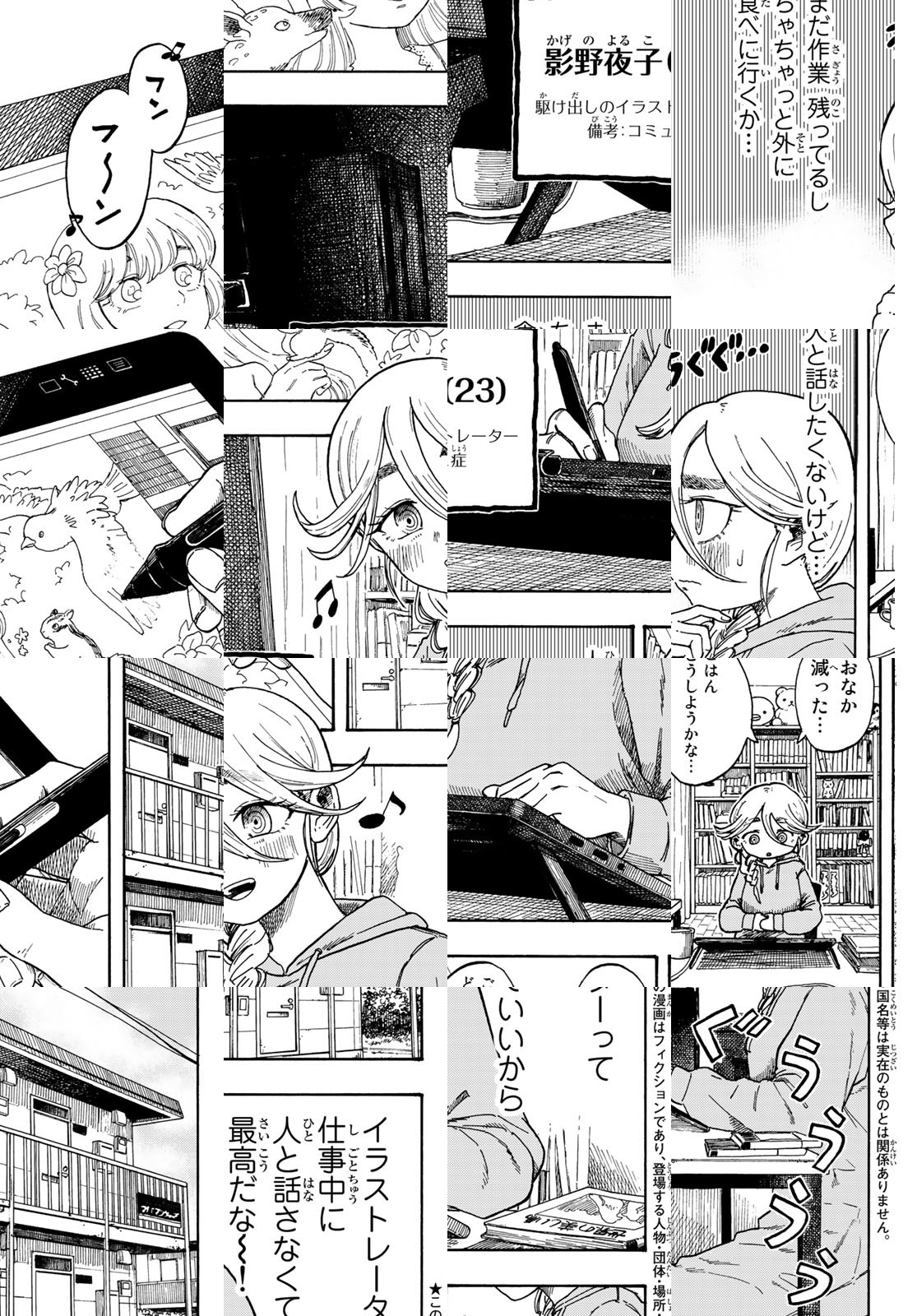 コミュニケーションが苦手なイラストレーター・影野夜子が住んでいる町は、いろんなお店でどうぶつが働く不思議な街で…。カフェラテづくりが得意な猫のウエイターさんをはじめ、パンダの保育士さん、カメのレジ打ち係さん、などなど。人が苦手な夜子でも、この町なら毎日が楽しい!どうぶつたちの可愛らしすぎるおつとめっぷりに笑いながら癒されるショートコメディ!!