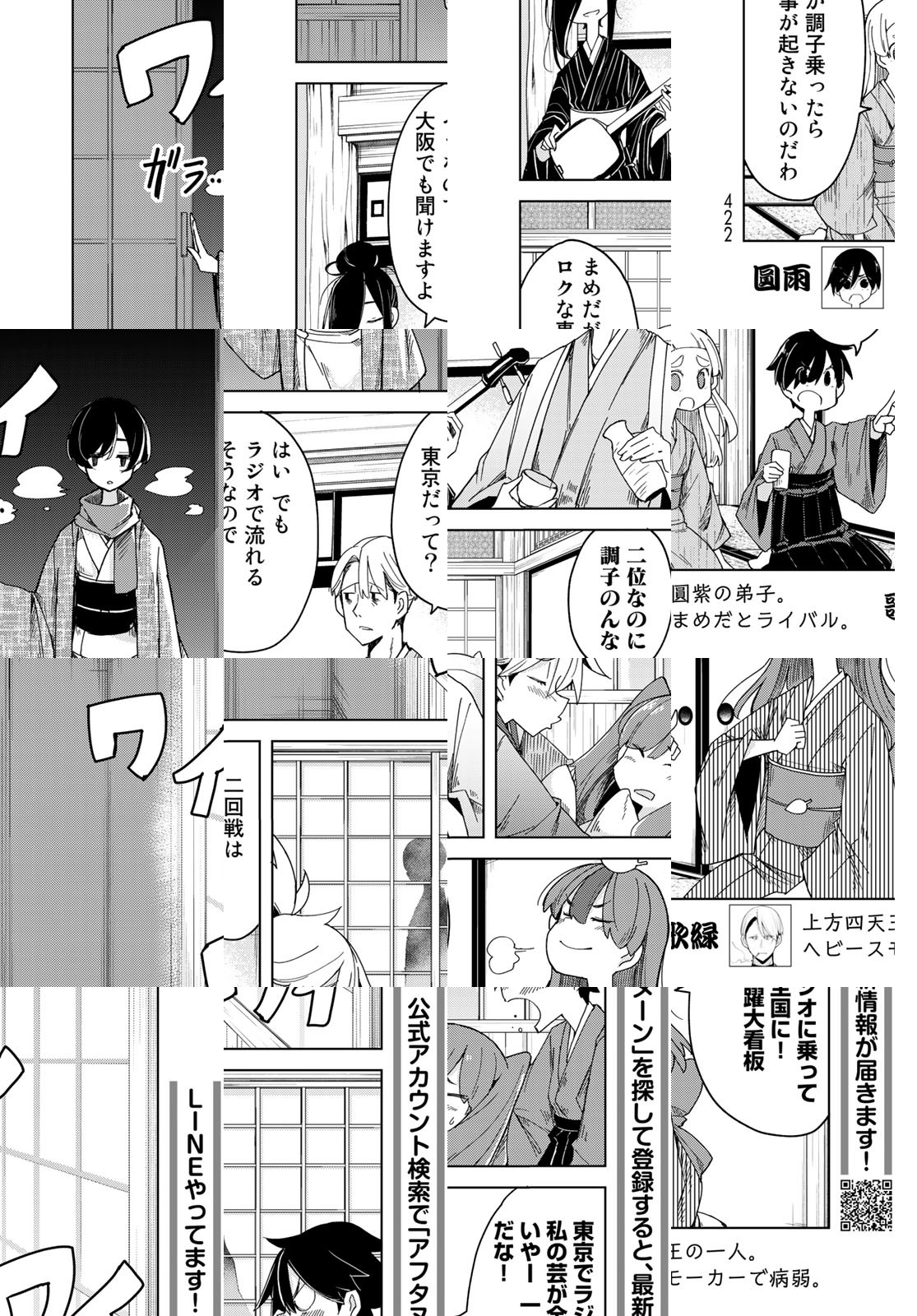 豆狸の女の子・まめだは、人気落語家・文狐の狐の芸に魅了され、弟子入りを志願! でも文狐には何か秘密があるようで…? 大正時代の大阪で師弟が繰り広げるハッピー落語師弟愛!