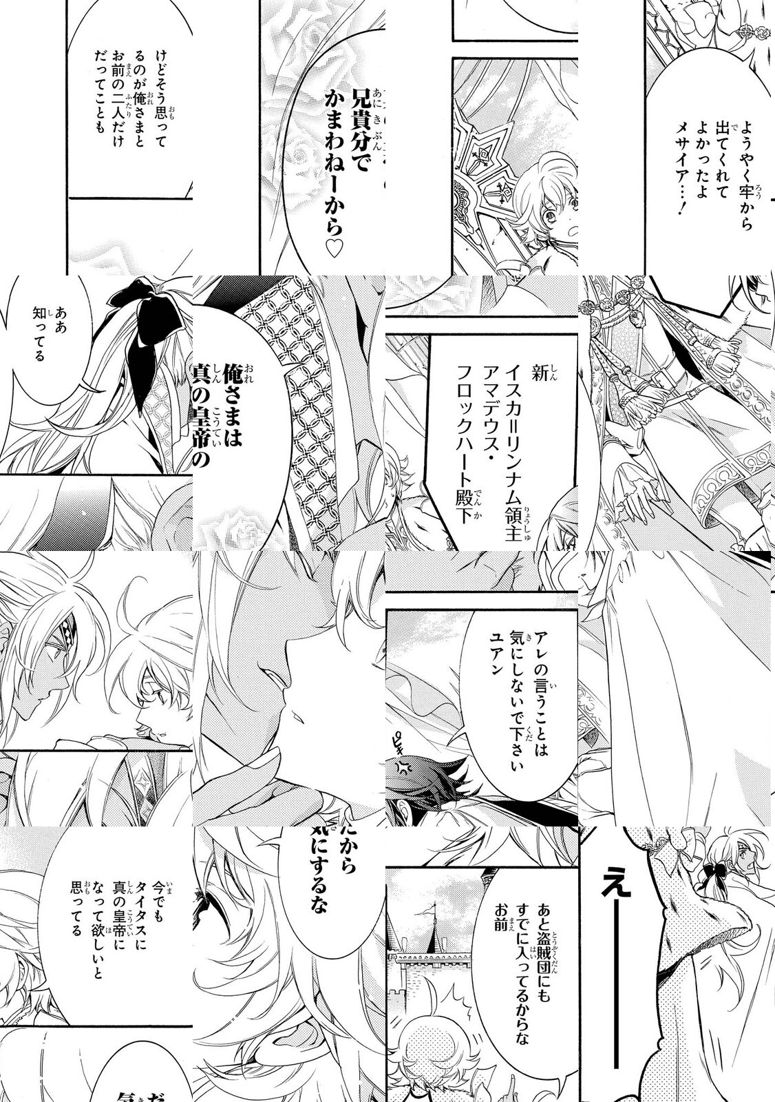 次の皇帝を選ぶ儀式のため、千年迷宮城に集められた皇帝候補の若者たち。古城からの脱出を目指す彼らは、待ち受ける数々の罠を掻い潜り、やがて王国にはびこる企み、そして隠された真実にたどり着く…!! 花鶏ハルノ&相川有が贈る大人気迷宮脱出ゴシックファンタジー!!