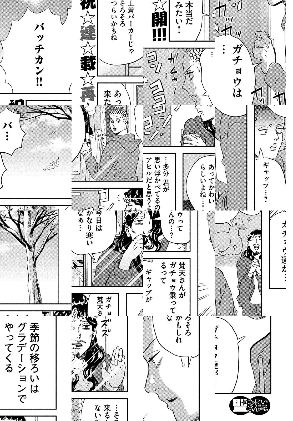 目覚めた人ブッダ、神の子イエス。世紀末を無事に越えた二人は、東京・立川でアパートをシェアし、下界でバカンスを過ごしていた。近所のおばあちゃんのように、細かいお金を気にするブッダ。衝動買いが多いイエス。そんな“最聖”コンビの立川デイズ。