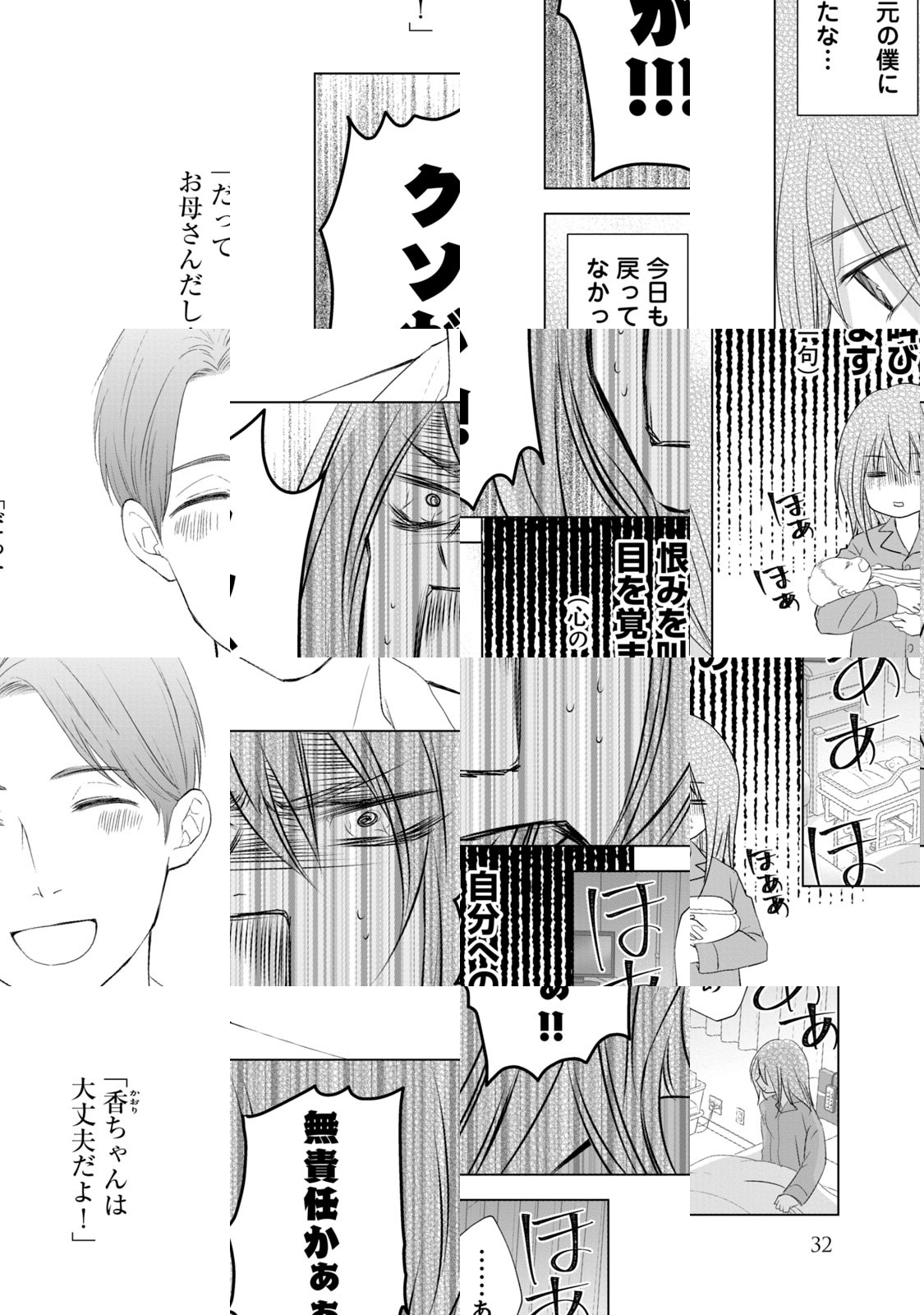 「あなたは子育てに必要ない」と、妻が離婚届を置いて出て行ってしまった僕、伊藤誠一。慌てて転んで目覚めると、出産したばかりの妻の香ちゃんになっていた!? 「香ちゃんなら大丈夫!」「もっとリラックスしよ!」「僕は何をしたらいいの?」……自分なりに育児に参加していたつもりの「僕」だったけど、実は何もわかっていなかった…? 不器用ながらも妻の体で、のんきな"自分"に苛つきつつ、子育てを始める誠一。果たして、“家族3人で暮らす”生活を取り戻せるのか!? 妊娠・育児経験者たちの間で共感の嵐を巻き起こした話題の「朝起きたら妻になって」シリーズ“子育て”編!