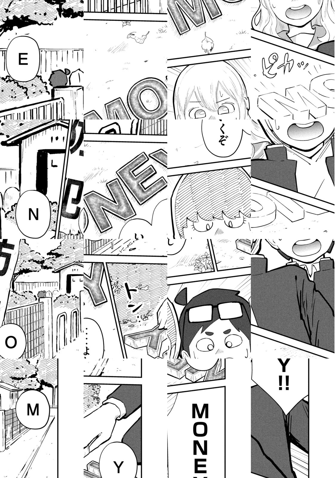 化石や土器が見つかる町に住む、勉強嫌いの中学生・キュータとオースケ。お金持ちになれば勉強しなくていいと考えた2人は、埋蔵金探しを始めたものの、見つかったのは謎のアルファベット。しかしそのアルファベットは、単語を作るとそのものが実体化する、とんでもない代物だった!それを知った2人が狙うのは・・・・MONEY。 そう、現金だ!!