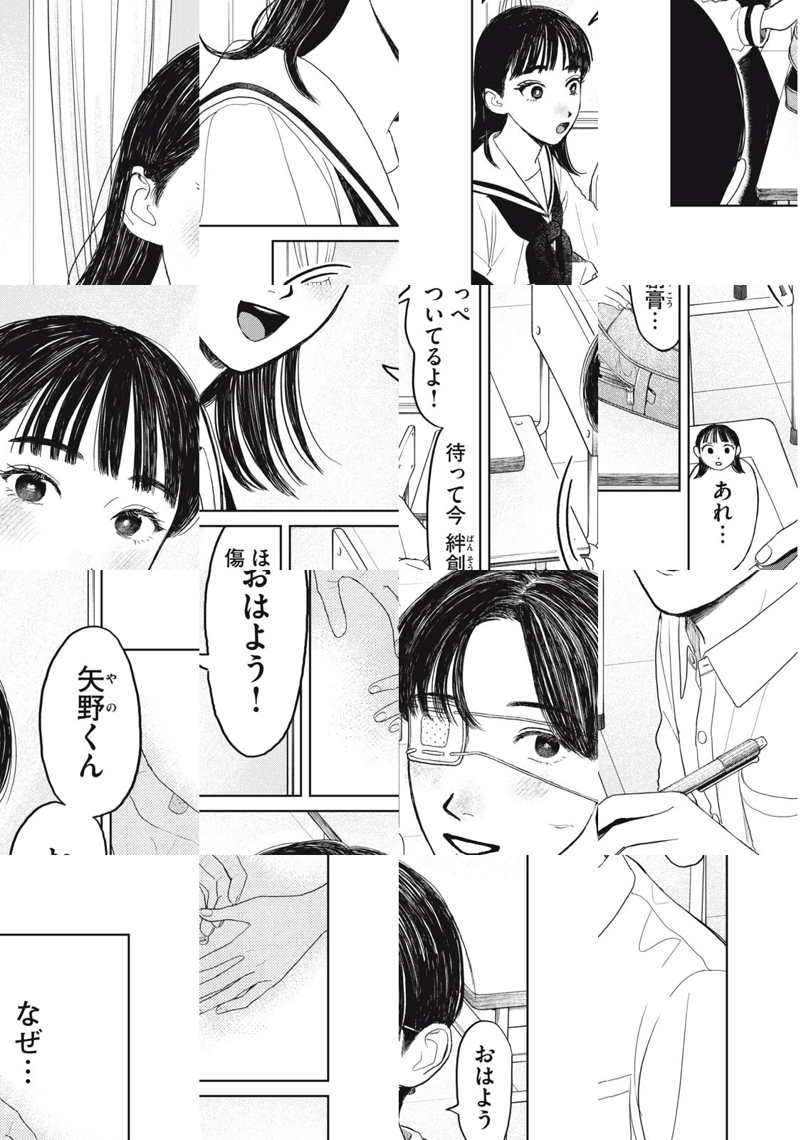 吉田さんは、人よりちょっと心配性なクラスの委員長。最近のもっぱらの心配事は、同じクラスになった矢野くんが、なぜか毎日大ケガをして学校にやってくること。ありとあらゆるケガをする矢野くんから、目が離せない!手当がしたくてたまらない!ケガまみれ男子と心配性女子による、日常系ラブコメディー!