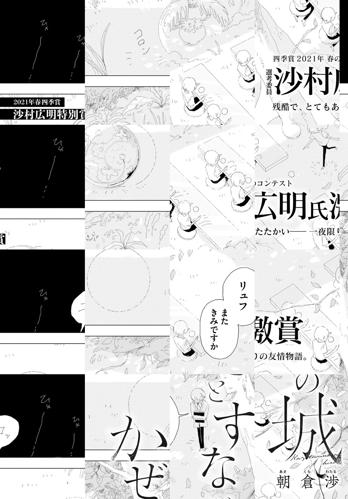 【アフタヌーン四季賞2021春 沙村広明特別賞】落ちこぼれのリュフは、補修をサボった罰として遠い島に飛ばされてしまう。枯れ果てたその国で彼は、独りぼっちの青年に出会う。残酷で、とてもあたたかい── 一夜だけの友情物語。