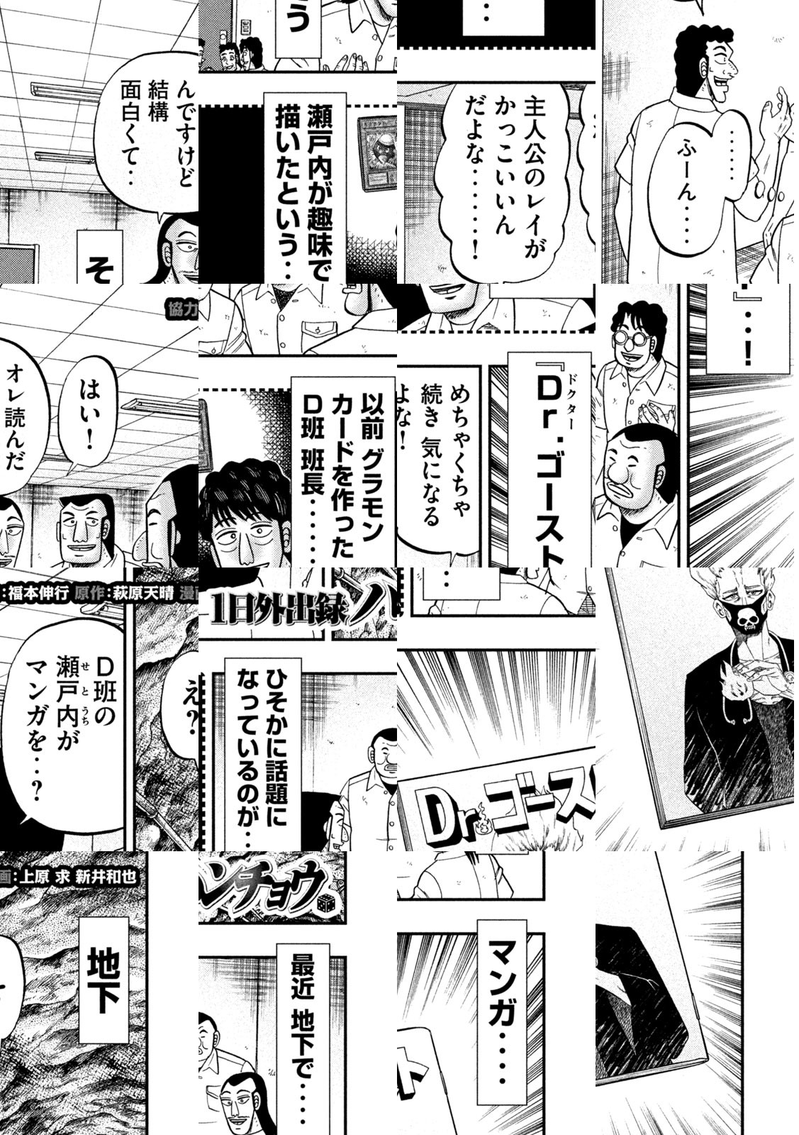 地の獄・・! 底の底・・! 帝愛地下労働施設・・! 劣悪な環境である地下にいながら「1日外出券」を使い、地上で贅の限りを尽くす男がいた・・! その名は大槻・・! E班・班長にして、1日を楽しみ尽くす匠・・! 飲んで食って大満喫・・! のたり楽しむ大槻を描く、飯テロ・スピンオフ・・!