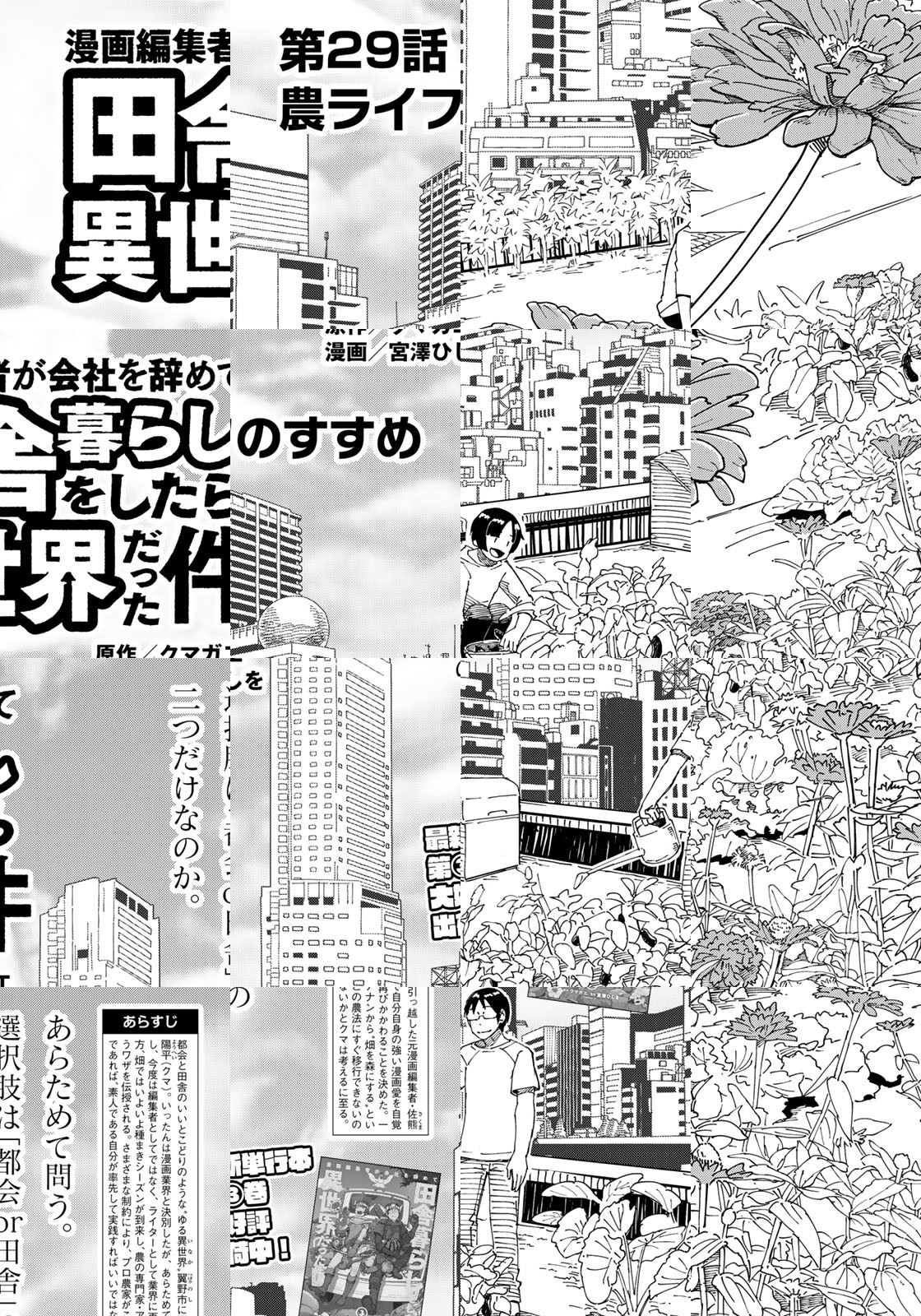 日本社会は変わる。徹底的に変わる――。これは、世間に先駆けて“新日常(ニューノーマル)”という大海に漕ぎだした一人の勇者の物語――!! 元漫画編集者の原作者が実体験をベースに描く、まったく新しい“がんばらない”都会脱出&農ライフ漫画!