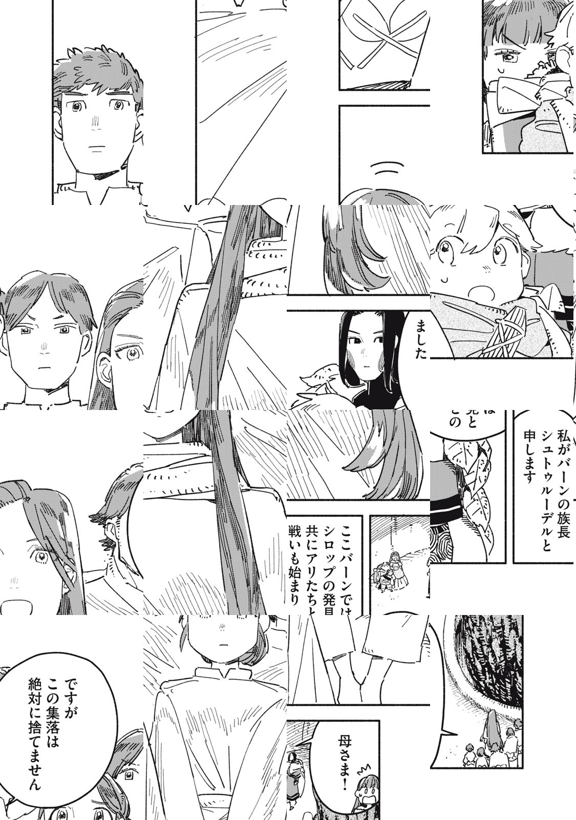こびとたちが暮らす森の中の集落。そこに住む「シイタ」は、親友の「ナラ」と近くの森を庭にして、日々冒険をしながら過ごしている。危険な動物たちがいる森の中でも、集落にいれば安全で快適だ。ある日ふたりは、集落から遠く離れた場所に、人が出したと思われる煙を見つける。ナラは、大人が何を隠しているのか、森で何が起こったのかを確かめるため、集落を出ようとシイタを誘う。そこには、シイタの父親の命を狙う「イズナ」がいた。