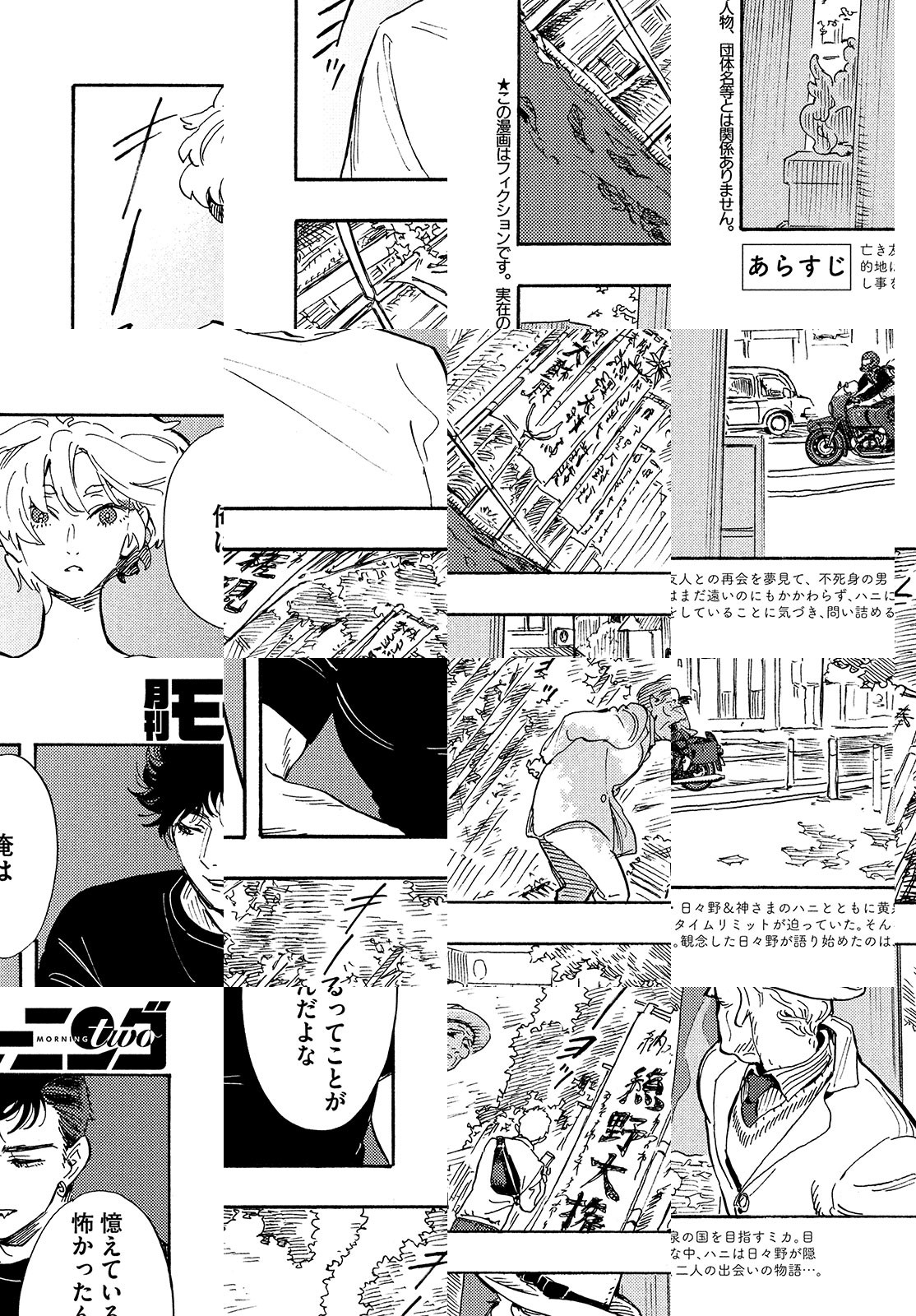 親友の死にショックを受け、自分も死のうとトラックの前に飛び出した少女・ミカ。彼女を救ったのは、不死身の男・日々野と、神を自称する青年(?)だった。二人が黄泉の国を目指していることを知ったミカは、その旅への同行を志願する。友人との再会を夢見て……! 鎌谷悠希が描く、蒼く切実なる旅物語!