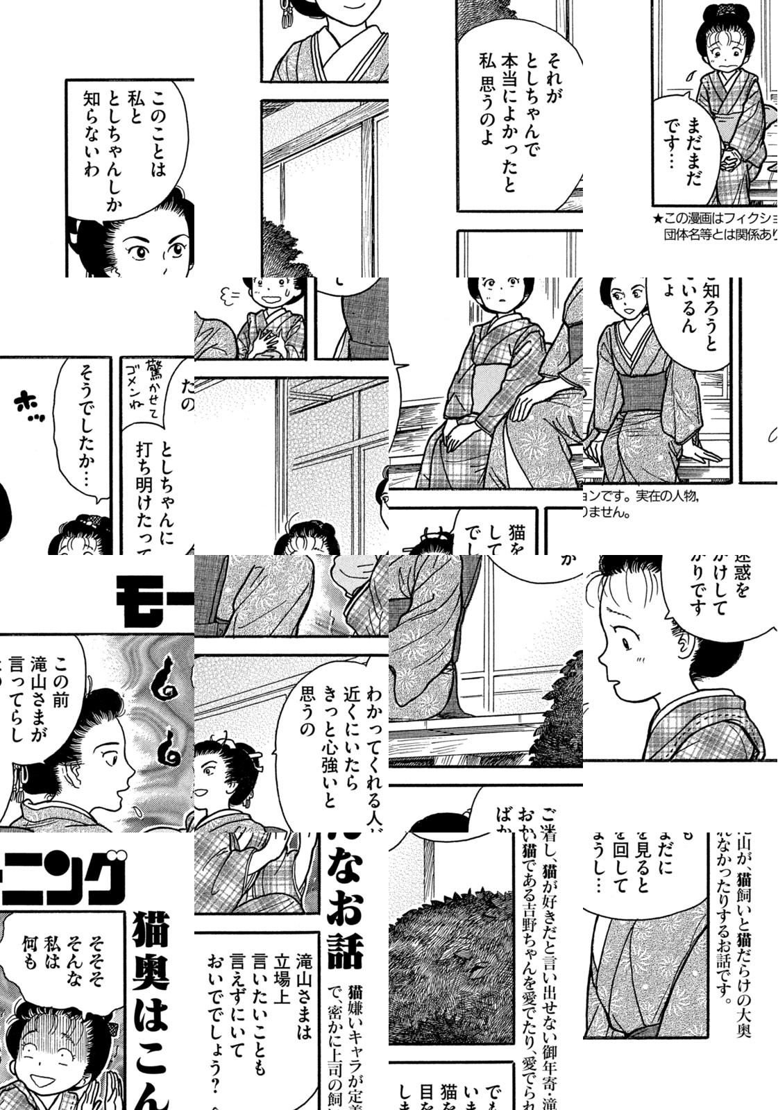 江戸時代。大奥に仕える女性たちの多くは、生涯独身であった。そんな彼女たちが、持てあました時間と愛情を注いだ対象、それは――にゃんと、ネコだった!? 大奥に暮らすオンナとネコの日常を描くほのぼのショート!