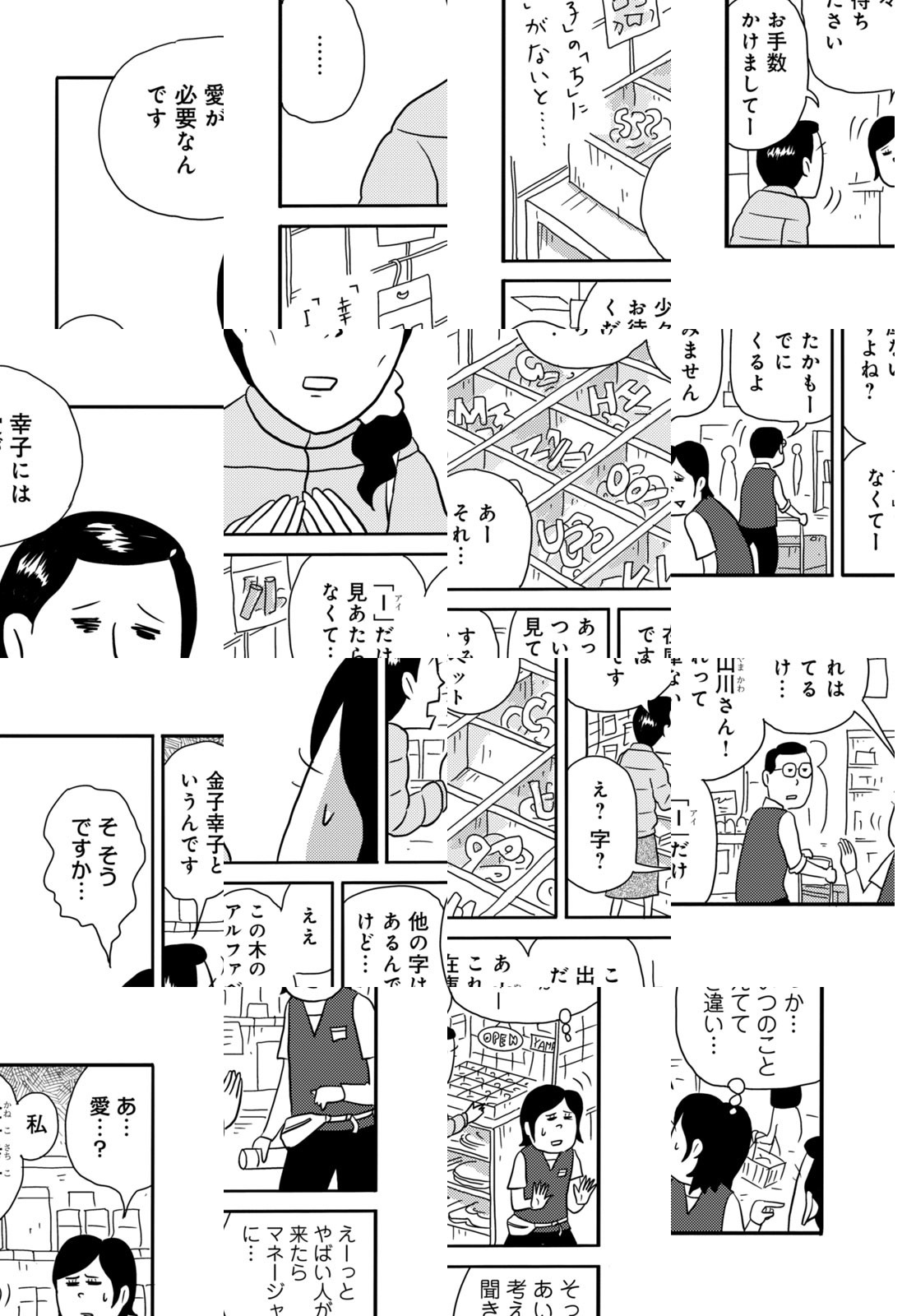 「金も幸も子もないものですから…」金子幸子、市役所勤務、33才独身、婚活中。今日も今日とて、真実の愛を探して生きてます…。悲しいときに部屋で一人創作ダンスを踊ったり、元彼にもらった魚拓を持って旅に出たり。不幸っぽいけどなんか楽しそう!?シュールでフフッと笑っちゃう、幸子の世界をご覧あれ!