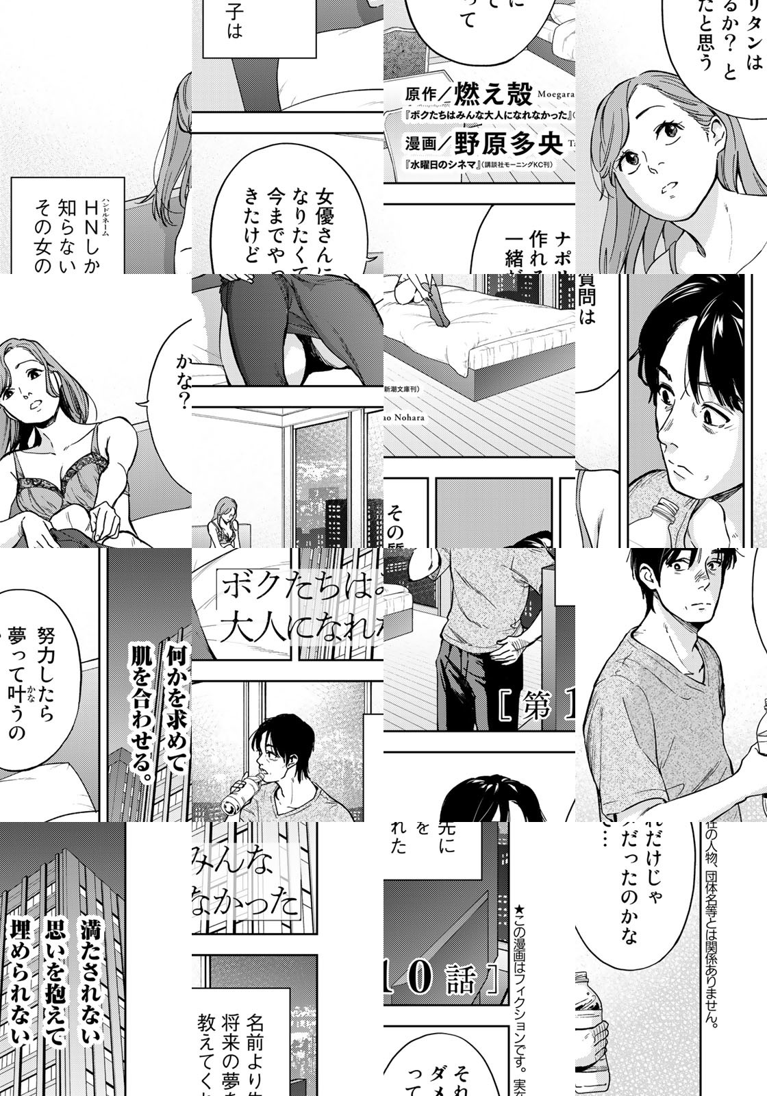 燃え殻によるベストセラー小説『ボクたちはみんな大人になれなかった』(新潮文庫刊)を俊英・野原多央がコミカライズ! それは人生でたった一人、ボクが自分より好きになったひとの名前だ。気が付けば親指は友達リクエストを送信していて、90年代の渋谷でふたりぼっち、世界の終わりへのカウントダウンを聴いた日々が甦る。過去と現在を SNS がつなぐ、切なさ新時代の大人泣きラブ・ストーリー。