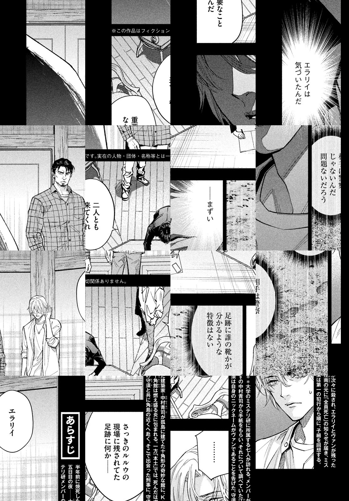 孤島に建つ十角形の奇妙な館を、大学のミステリ研究会に所属する7人が訪ねる。この館を設計した中村青司は、半年前に謎の焼死を遂げていた。そして、凄惨な殺人劇が、幕を開ける――。2018年に第22回日本ミステリー文学大賞を受賞した綾辻行人による新本格ミステリ『十角館の殺人』を、美麗画力の清原紘が描く!