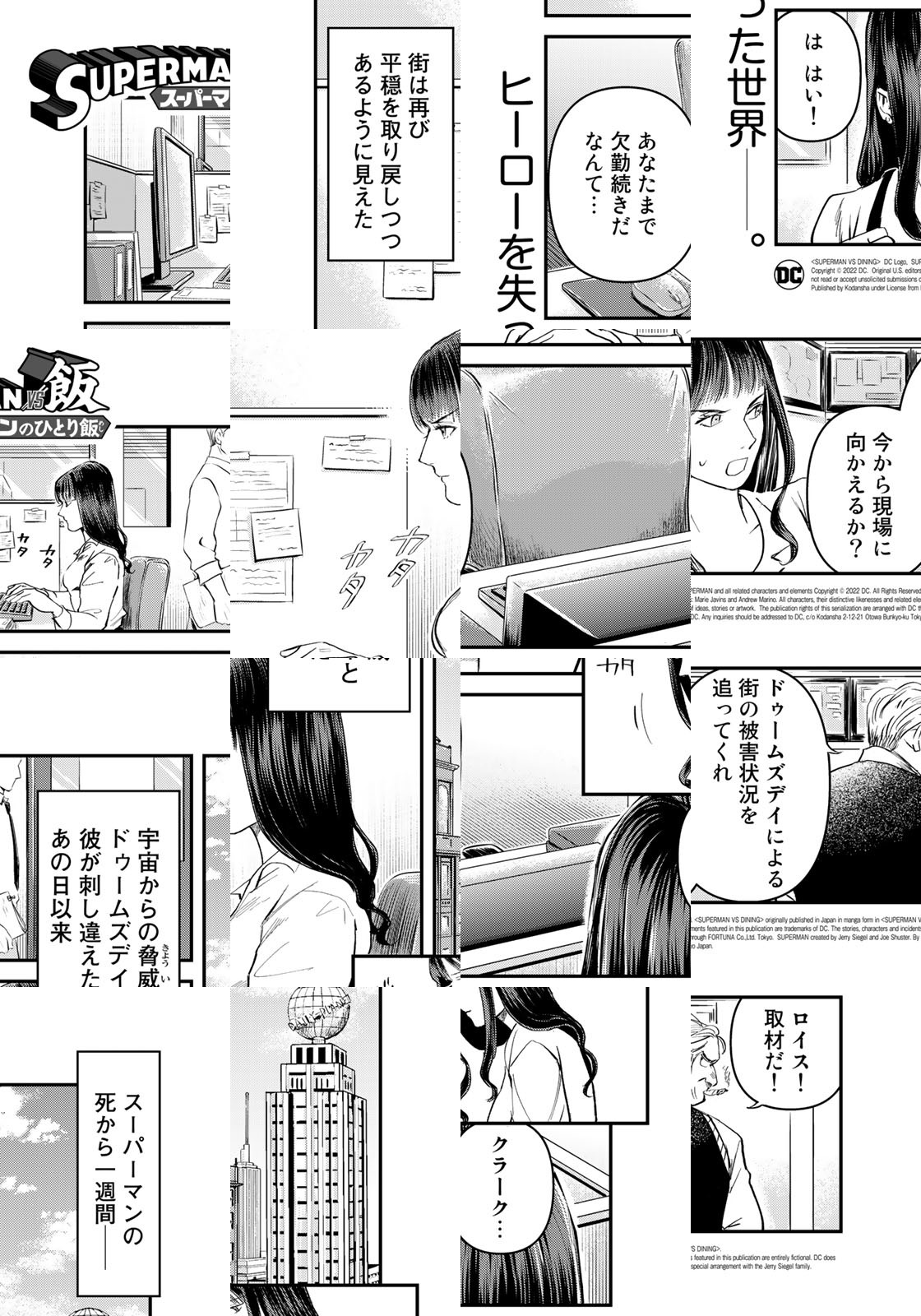 スーパーヒーローも腹は減る。地上最強の男・スーパーマンとして忙しく働く彼の毎日の楽しみ——それは日本で食べるランチ。超人的聴力で自分のお腹が鳴る音が聞こえたら、路地裏でスーツを脱ぎ捨て、日本の外食チェーンへ飛んでいく。釜飯を熱光線で温めたり、天丼の具材でジャスティスリーグを結成したり、ランチタイムのスーパーマンはマイペースでいい! DCコミックス公認のスーパーマン×グルメ漫画!