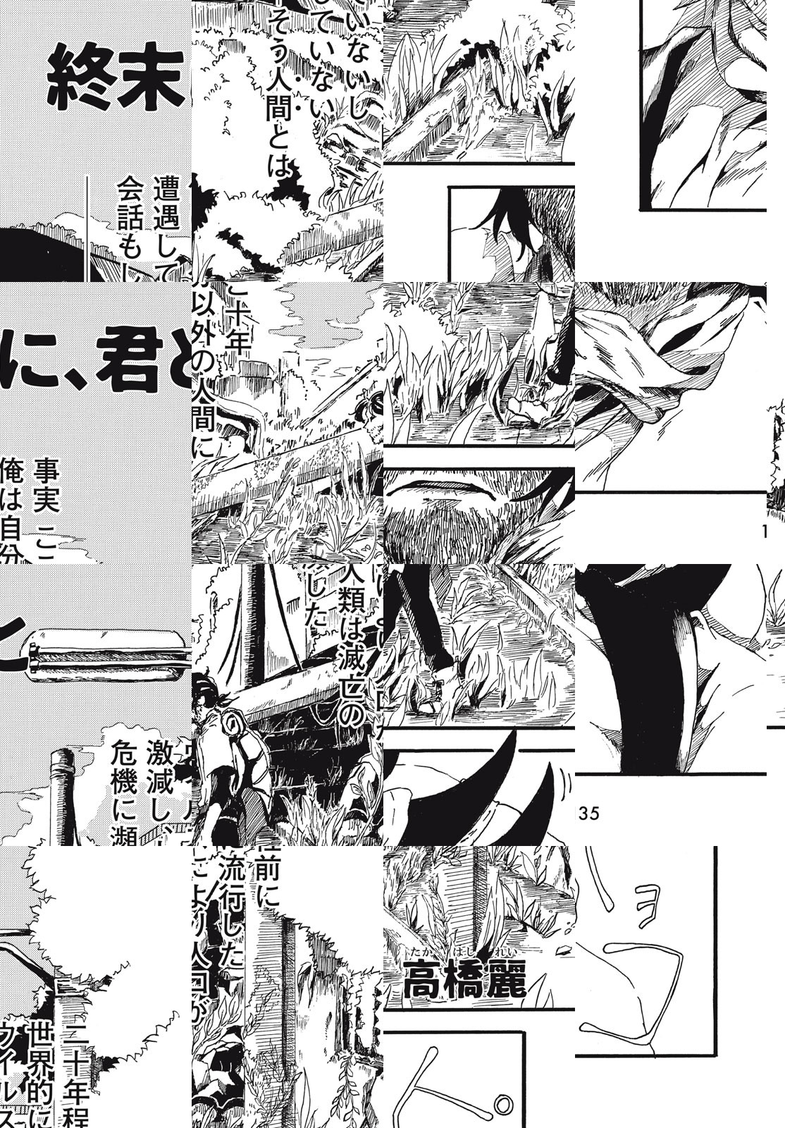 【アフタヌーン四季賞2021秋 準入選】ウイルスで人口が激減した世界を、人との出会いを求めて放浪する男が女に出会った。しかし男は余命いくばくもなかった。