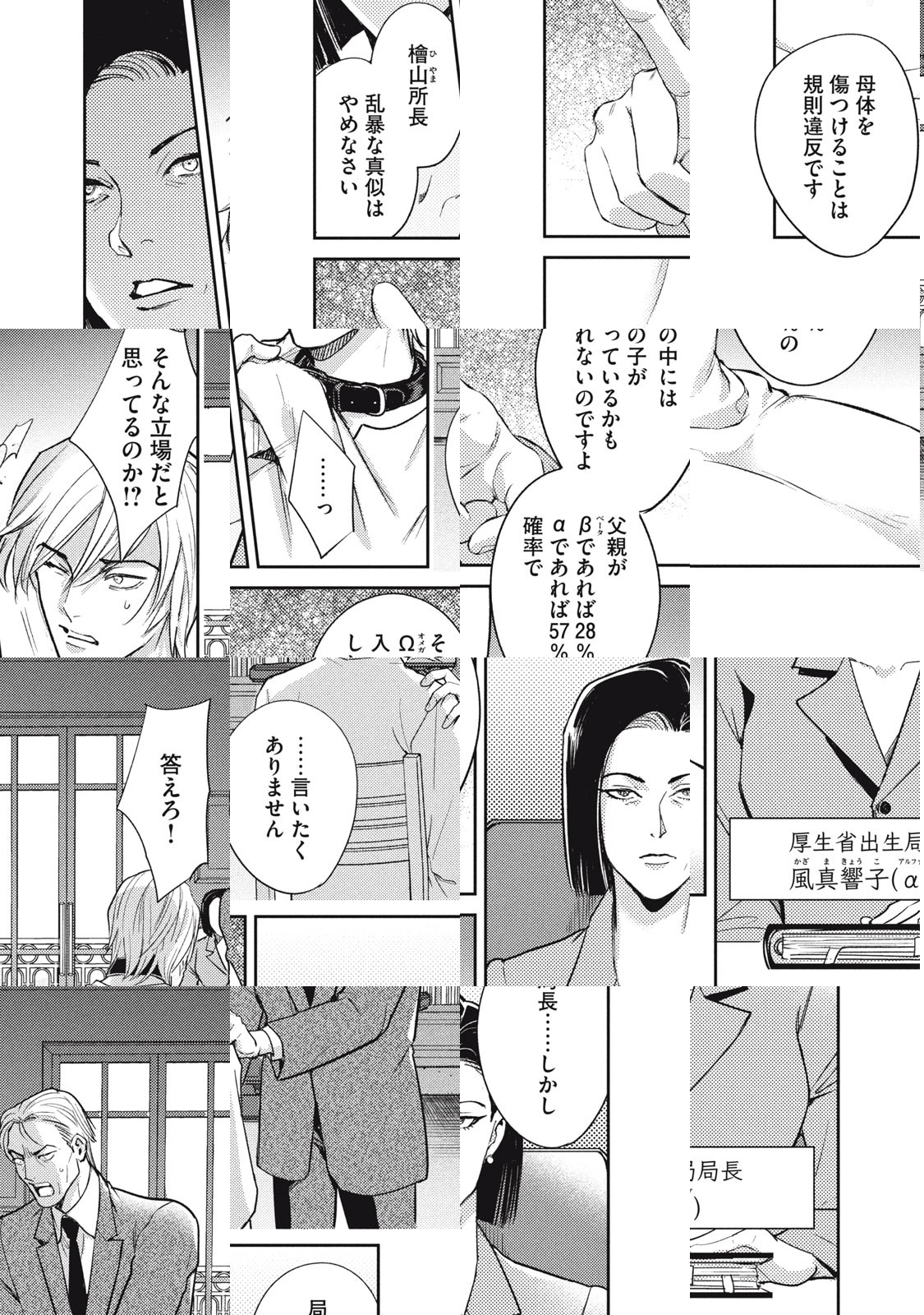 優れた性とされるα(アルファ)が支配する世界。αを産む宿命を背負うΩ(オメガ)の人生は、αの子供を持てるか否かにかかっていた――。財閥一家である婚家・英(はなぶさ)家で子を生せず疎まれていたΩ・犀門(さいもん)は、一人のΩの少年をαと偽り、英家当主の座を狙わせるのだが…!? 性別による身分社会で最下層の、Ωたちの闘いが始まる…!