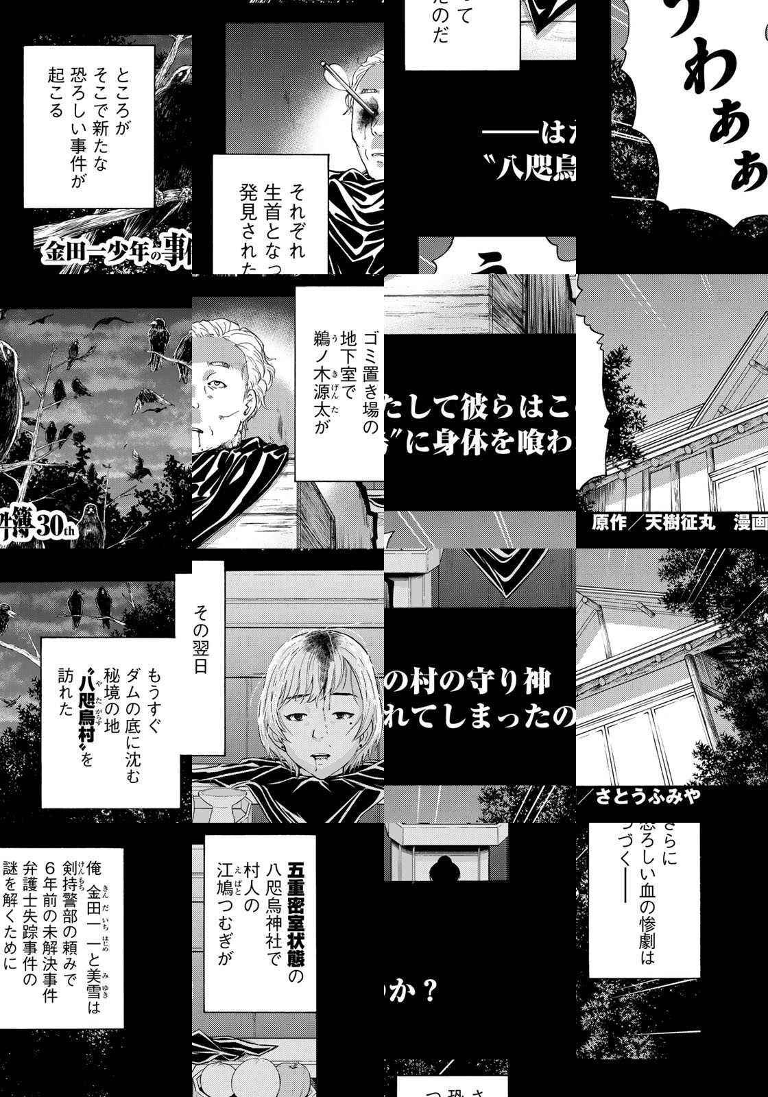 高校生のはじめや美雪が帰ってくる! 新シリーズの名は「八咫烏村殺人事件」。6年前の迷宮入り事件の謎を解くために、2週間後にダム湖の底に沈む秘境の地『八咫烏村』を訪れたはじめ達。そこには恐るべき怨念の秘密が渦巻いていた──!