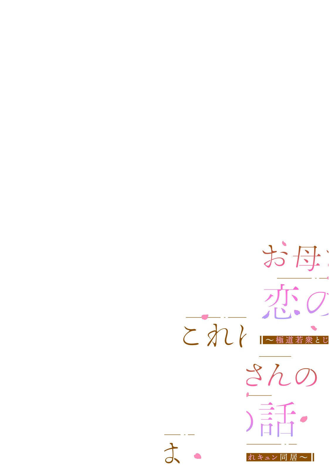 旦那さんを交通事故で亡くした夏帆さんは、女手一つで喫茶店を切り盛りし、一人娘の鈴ちゃんを育てていた。幼い頃から笑うのが苦手で、明らかに接客業に不向きの夏帆さん。旦那さんが亡くなってから2年を経て、喫茶店経営は窮地に陥ってしまい、光熱費の支払いまで危うい状況に。そんな中、夏帆さんのまえに救世主と思えるようなイケメンが現れる。その名は「はなとら組の松岡さん」で・・・!?『エンゲージ・ピンク』、『ニコ色のキャンバス』の式田奈央が贈る、シングルマザー×極道、ひとつ屋根の下オトナのピュア恋!