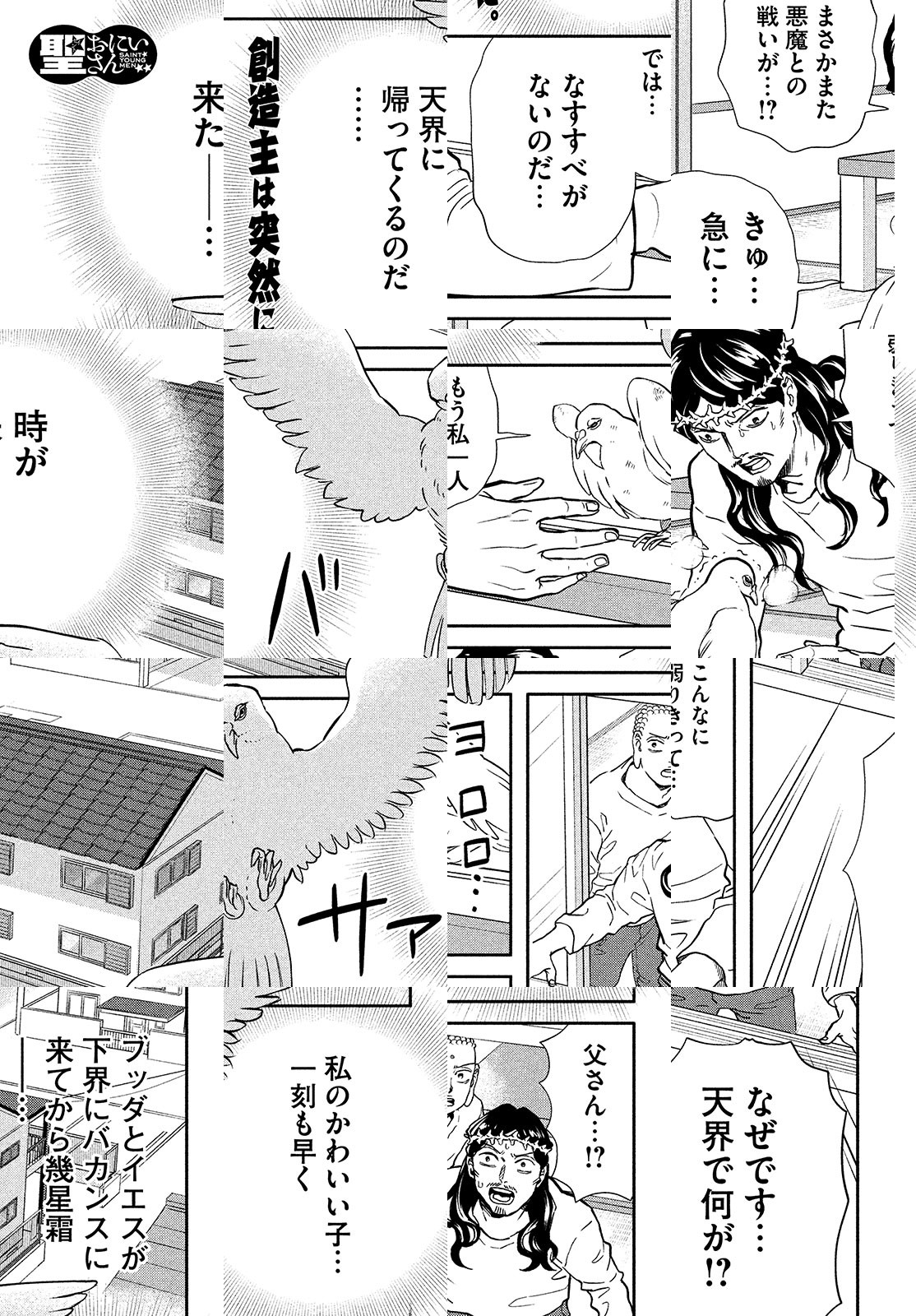 目覚めた人ブッダ、神の子イエス。世紀末を無事に越えた二人は、東京・立川でアパートをシェアし、下界でバカンスを過ごしていた。近所のおばあちゃんのように、細かいお金を気にするブッダ。衝動買いが多いイエス。そんな“最聖”コンビの立川デイズ。