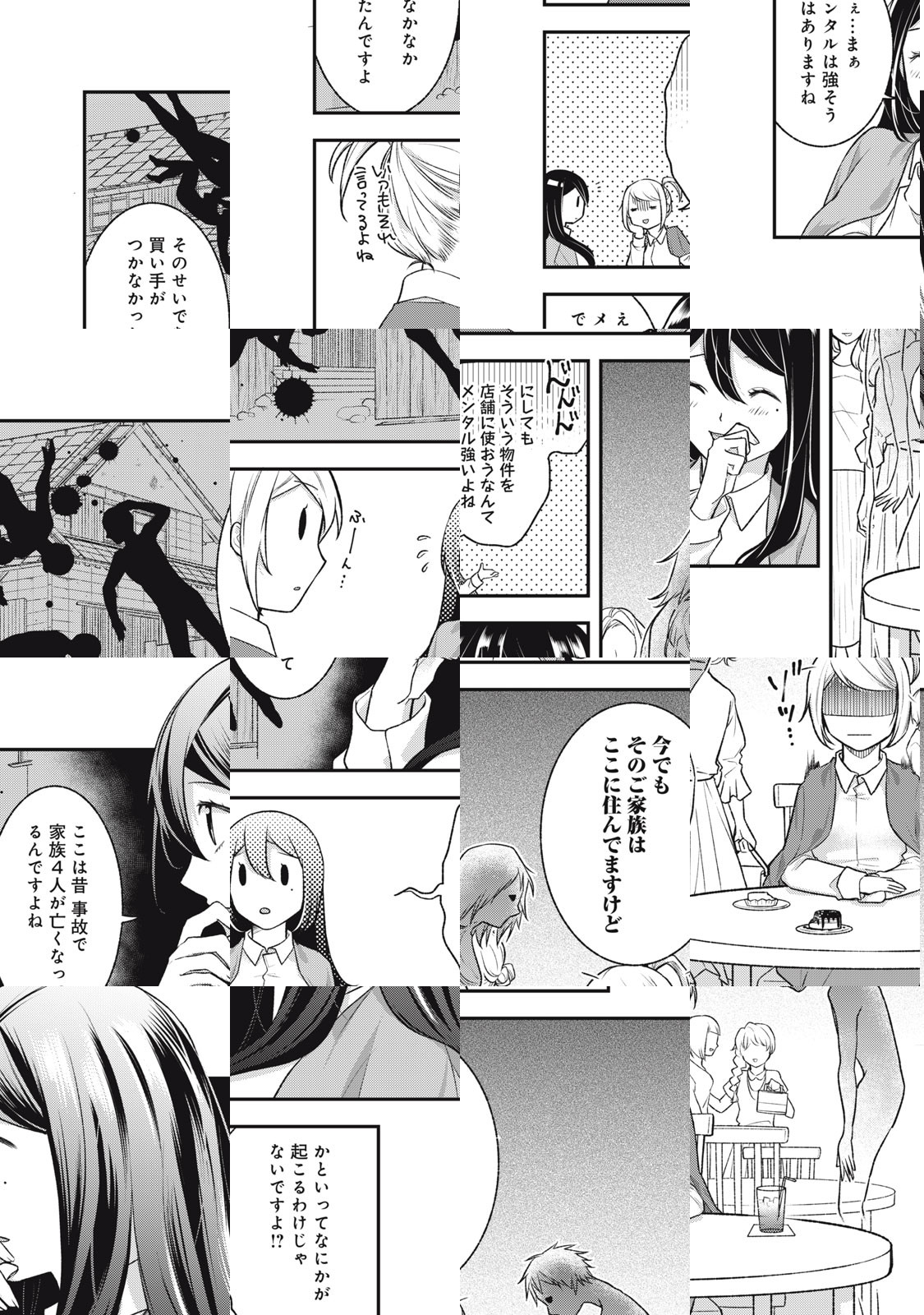 ハナスオウ不動産に入社したばかりの女性・古霊には、霊が視える特別な力がある。先輩社員の真壁はそんな彼女と組んで、ある事故物件の担当になるが、その物件にはまだ前の「住人」が憑き物として住み着いていて…? 事故物件には恐怖と悲しみが同居する! 事故物件をめぐるホラー・ヒューマンドラマ開幕です!