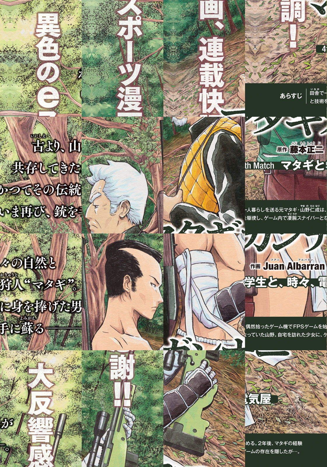 孤独な田舎暮らしを営む元マタギ、山野仁成。一度は銃を置いたはずの彼が手にしたのは、“FPS”バトルロイヤルゲームだった! 最新鋭のeスポーツと、マタギの伝統技術が交わって生まれた異色のスナイパー。日本の片田舎から、前代未聞の最強伝説が、今始まる!