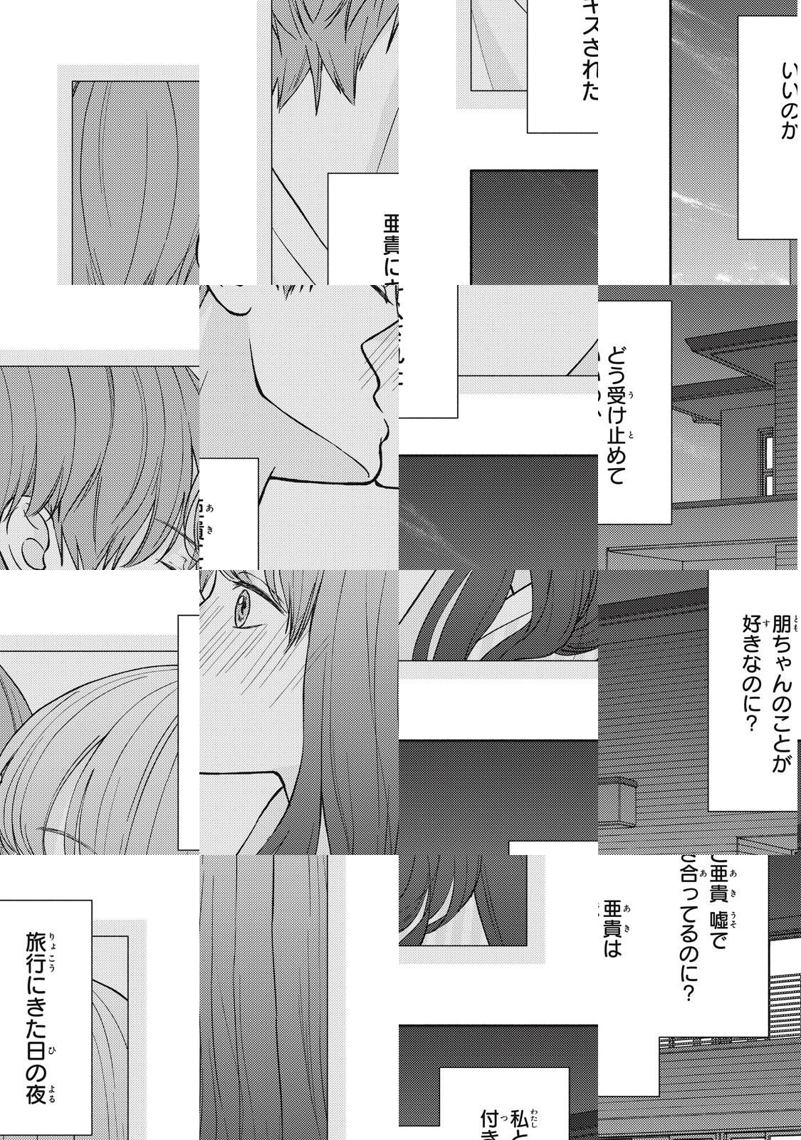私の彼氏は私を愛することはない――。大学生の梢は、幼なじみの亜貴と総司に朋美が加わった4人組で仲良く過ごしている。小さい頃から亜貴に想いを寄せる梢だけど、一年前のあの夏の日、4人でいるために自分の気持ちに嘘をついてしまう。その嘘が梢をどんどん苦しめて……。若者の切なく甘酸っぱい四角じれじれラブストーリー。