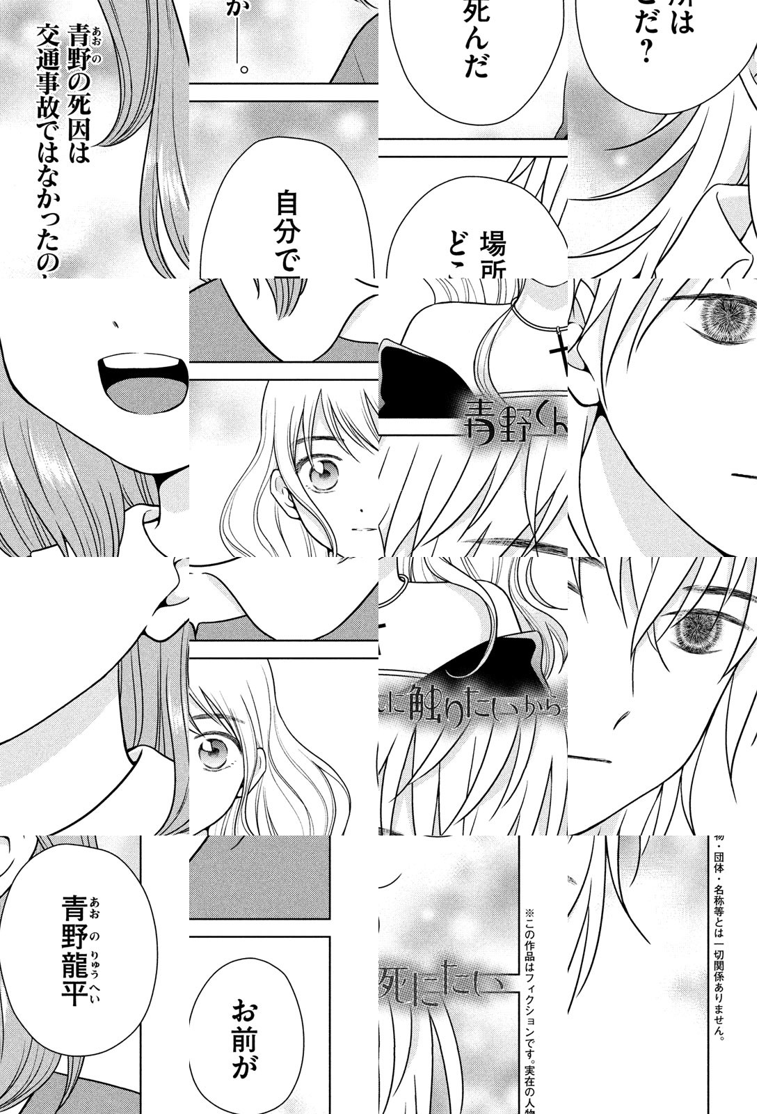 君に触れるなら、死んでもいいよ。これがわたしの愛なんだ。アフタヌーン公式サイト「モアイ」掲載の1話が300000PV突破で話題! 天然少女・優里ちゃんと、その彼氏・青野くん。ごく普通のお付き合いをしていたふたりだが、ある日突然、青野くんが「いなくなって」しまう……。絶対に結ばれないし、触れ合えないふたりの、でたらめで切実すぎるラブ・ストーリー。