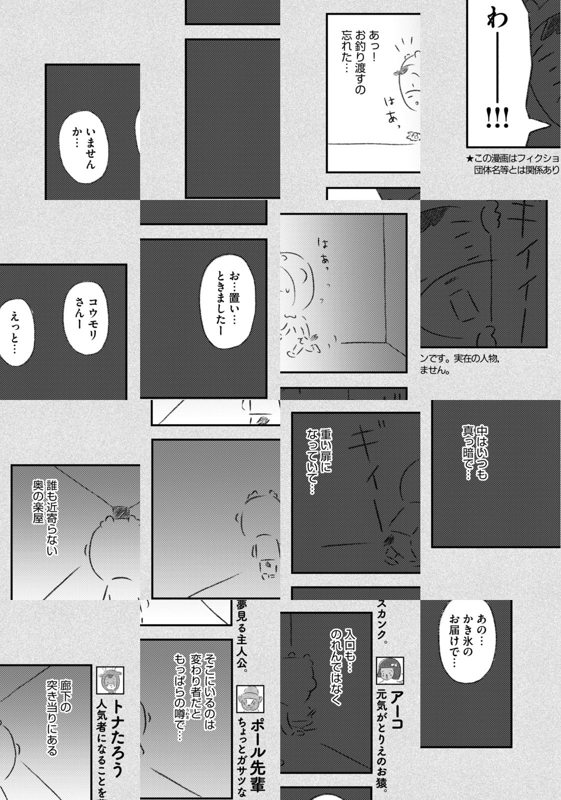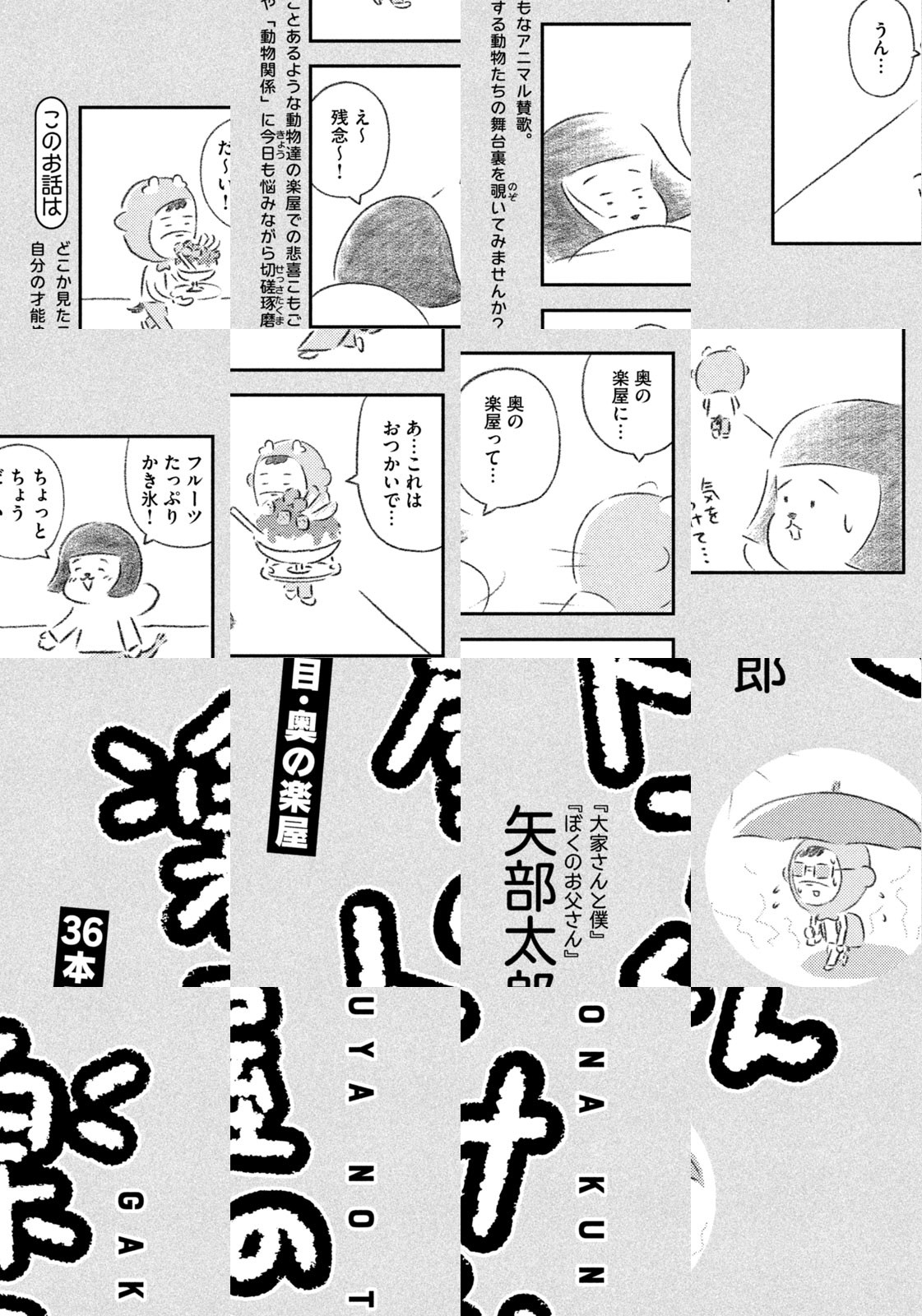 先輩にはいびられ、後輩には舐められ、お客さんには気づかれない主人公・トナカイのトナたろう、ちょっとガサツでデリカシーのないスカンクのポール先輩、元気すぎるお猿のアーコ、大人気のパンダくんなど、どこか見たことあるような動物たちの楽屋での悲喜こもごもなアニマル賛歌。自分の才能や“動物関係”に今日も悩みながら切磋琢磨する動物たちの舞台裏を覗いてみませんか?