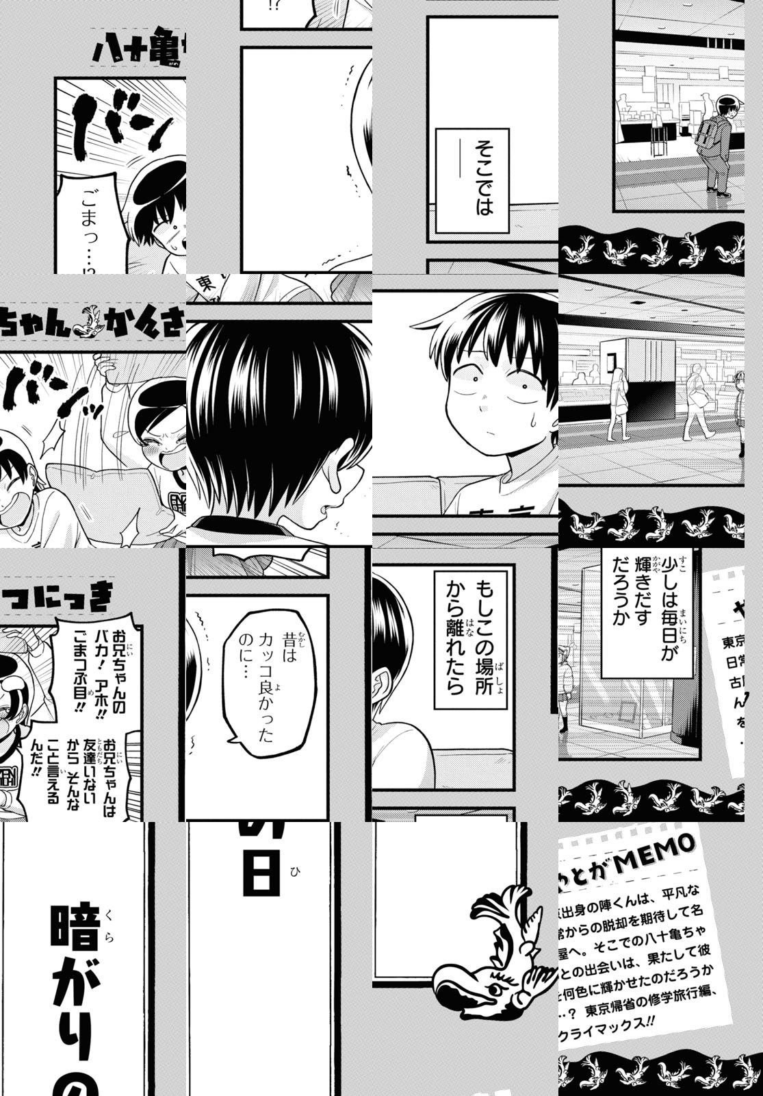 東京育ちの高校生、陣界斗が転入先の名古屋で出会ったのは、露骨な名古屋弁の女子高生「八十亀最中」だった。ネコのような風貌の八十亀ちゃんは、気難しくて全然懐いてくれない…。かわいい八十亀ちゃんを観察し、名古屋の魅力を見つけ出す。アニメも大人気の局地コメディ!!