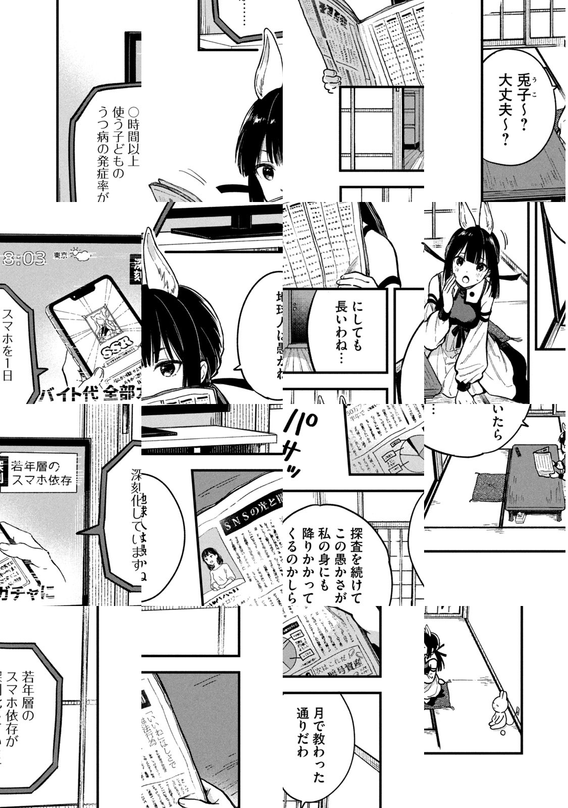 地球こそ異世界だった!? 獣耳で百合SF(すこしふしぎ)。月には高度な文明を持つ、地球人に瓜二つの『兎人』が住んでおり、彼らは規則正しく平凡な日常を好む兎の遺伝子を組み込み、自らを従順な生物に作り変えていた。行きついた先は、AIに食事内容から分刻みの余暇の過ごし方まで、全ての選択を委ねた社会。そんな中、「自分のことくらい自分で選ばせてよ~!!」と兎人の少女・兎子(うこ)は地球へと飛び出し、地球探査中の兎人・跳(はね)と出会う。2羽は戸惑いながらも…!?