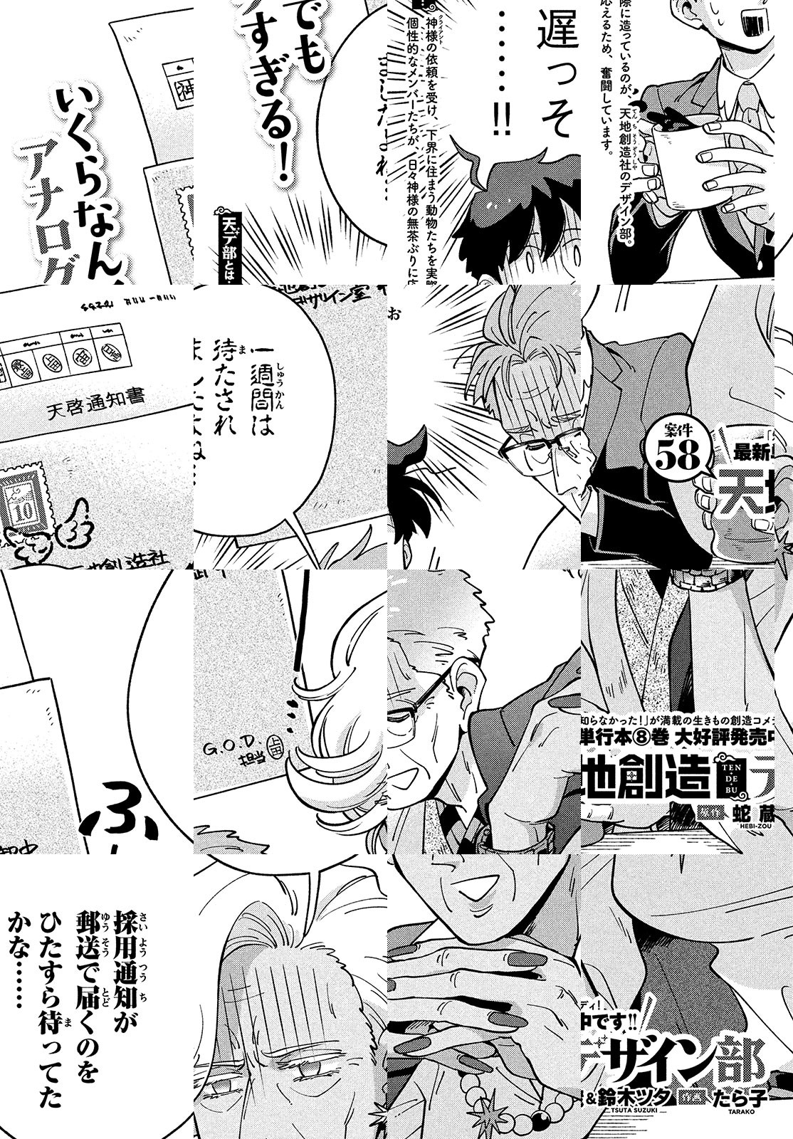 天界にある動物の「デザイン室」では、神様(クライアント)からのムチャ振りを受けて、日々さまざまな動物がデザインされていた。「ユニコーンってなんで存在しないの?」「美味しい生き物の条件って?」「海で最強の動物は?」「蛇と鳥、どっちが強い?」など、動物への素朴な疑問で楽しく学べる、動物創造コメディ!!
