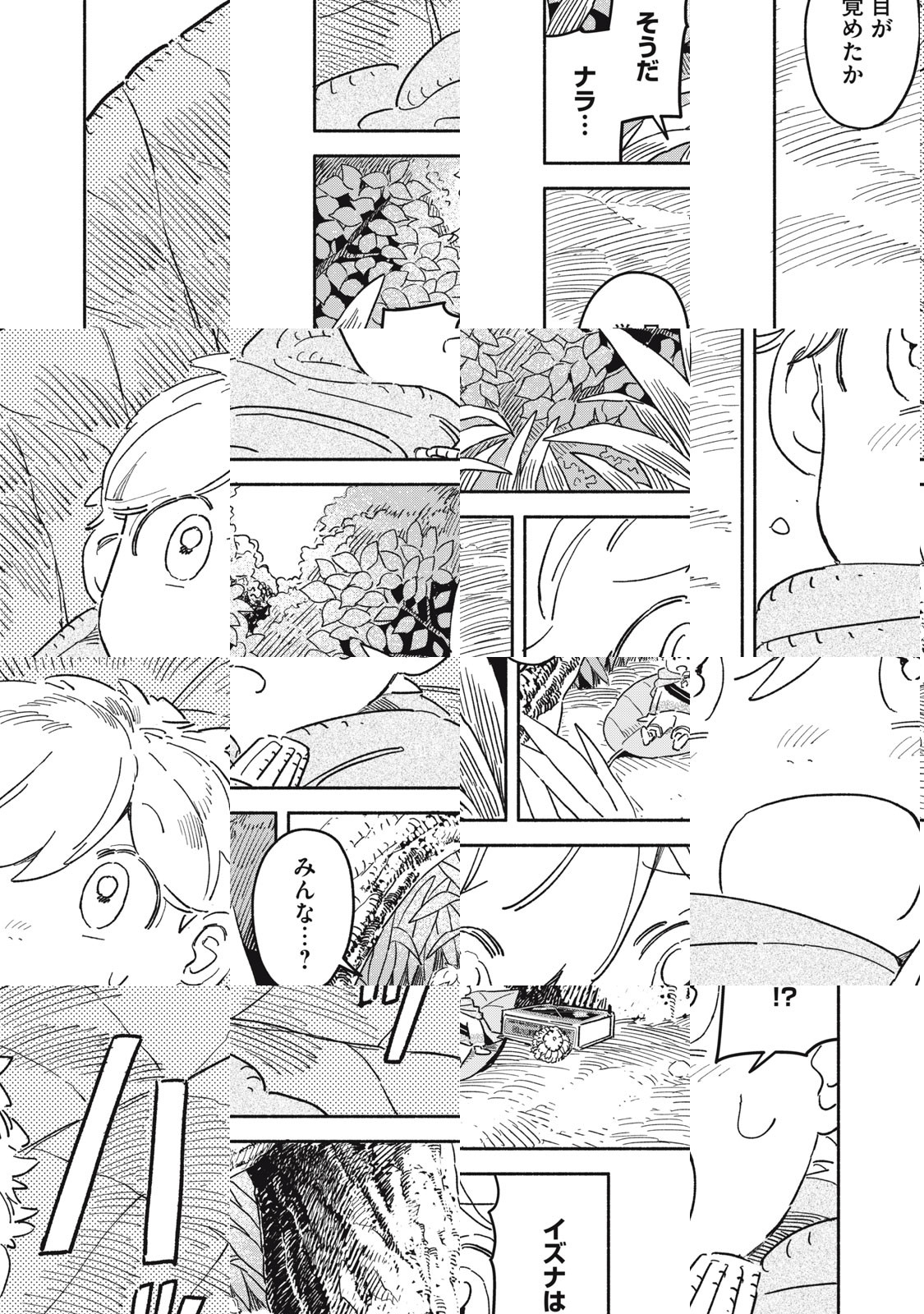 こびとたちが暮らす森の中の集落。そこに住む「シイタ」は、親友の「ナラ」と近くの森を庭にして、日々冒険をしながら過ごしている。危険な動物たちがいる森の中でも、集落にいれば安全で快適だ。ある日ふたりは、集落から遠く離れた場所に、人が出したと思われる煙を見つける。ナラは、大人が何を隠しているのか、森で何が起こったのかを確かめるため、集落を出ようとシイタを誘う。そこには、シイタの父親の命を狙う「イズナ」がいた。