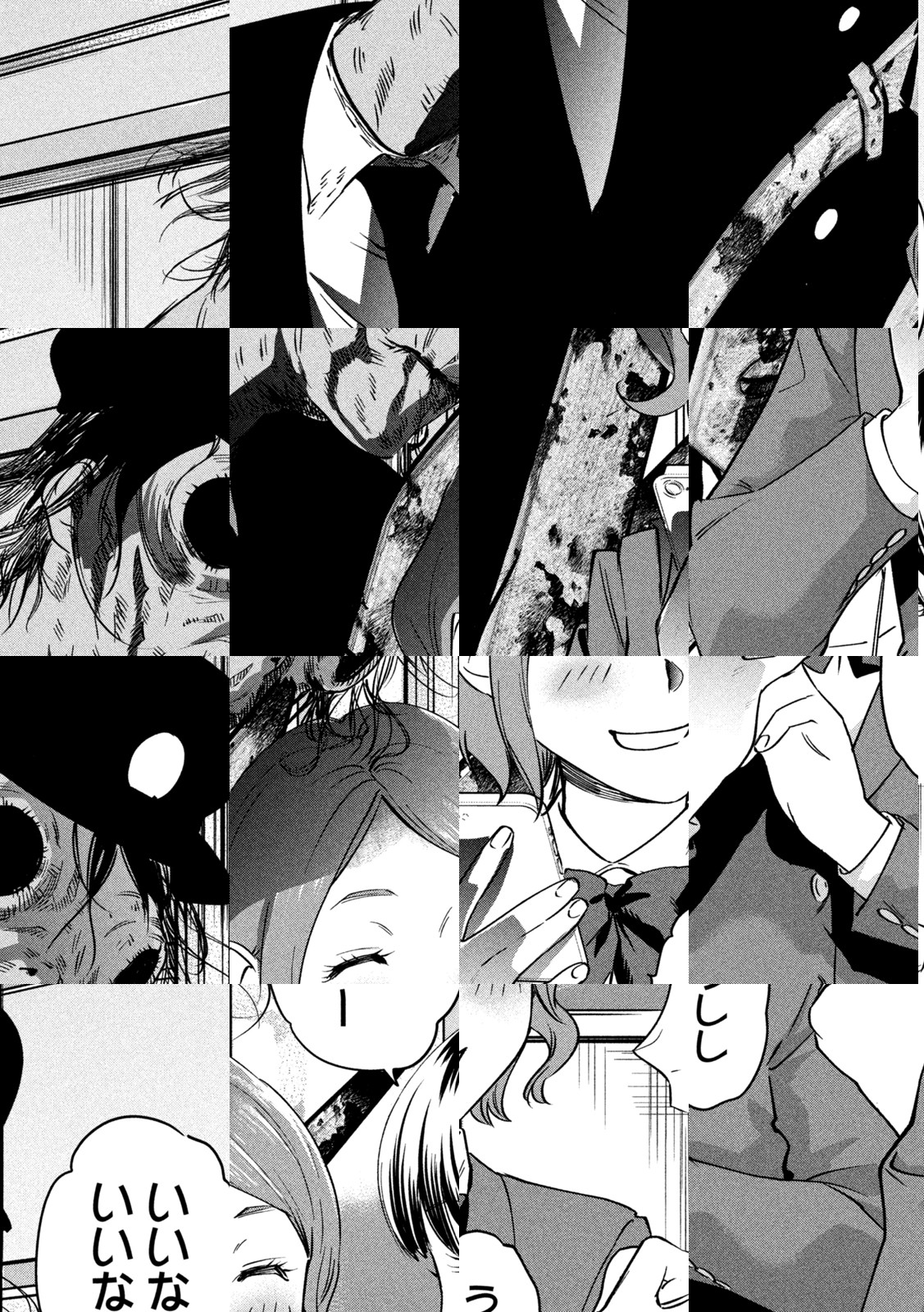 駅や電車内を徘徊している、駅員の格好をした奇妙な風貌の男。正体不明の男の姿が見えてしまった者は、彼が手に持つ大バサミで、その駅を人生の終点にされてしまう!! 恋人の周とのつつましいキャンパスライフを送っていた女子大生・月子にも、彼の姿が見えてしまい…!? 一度読んだらも、この恐怖から乗り換えられない…戦慄と衝撃が連結のトレインホラー!!