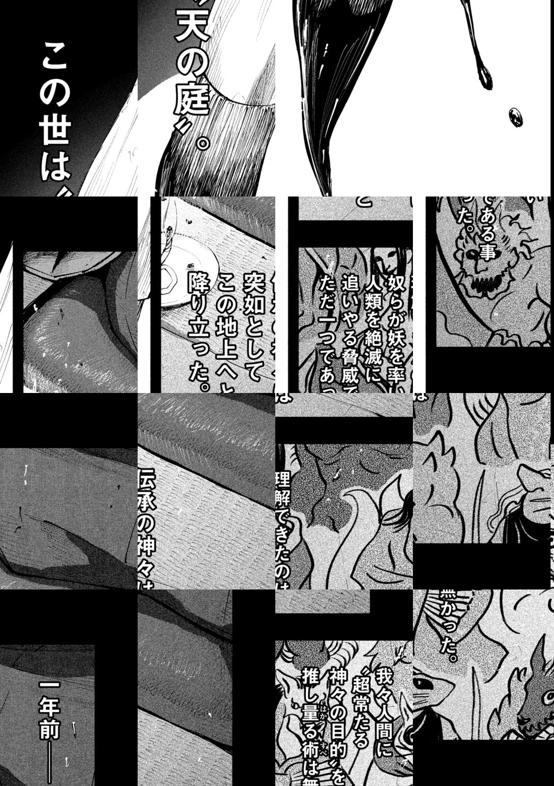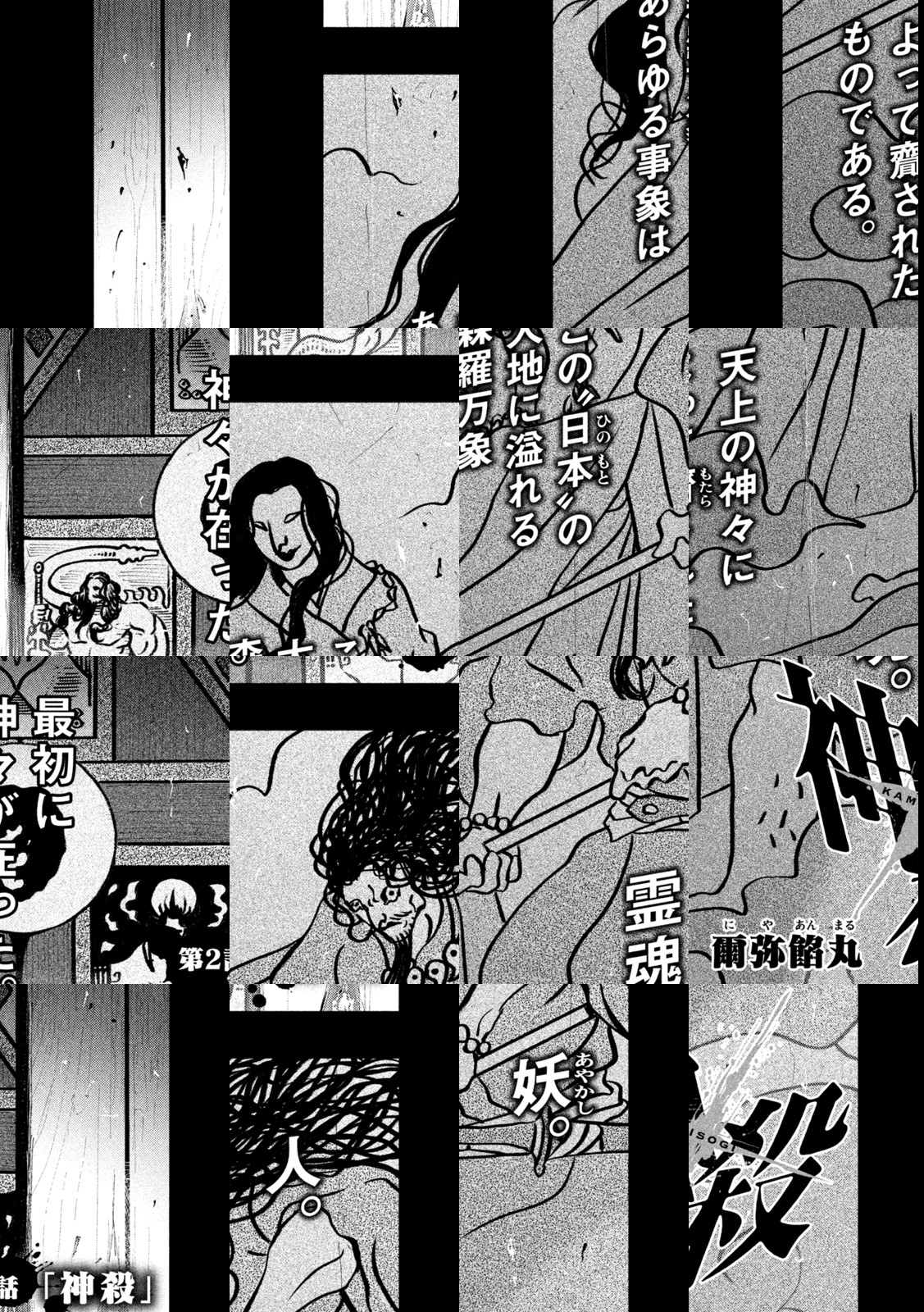神の侵攻によって滅亡に瀕する日ノ本に現れたのは、“神殺”と呼ばれる男だった。四肢のない少女を背負ったその男が持っていたのは、文字通り“神を殺せる力”――。絶対なる存在に立ち向かう叛逆のダークファンタジー、開幕。