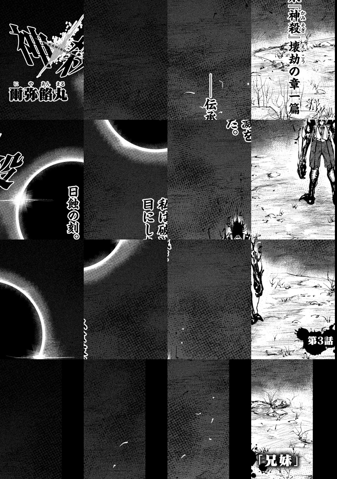 神の侵攻によって滅亡に瀕する日ノ本に現れたのは、“神殺”と呼ばれる男だった。四肢のない少女を背負ったその男が持っていたのは、文字通り“神を殺せる力”――。絶対なる存在に立ち向かう叛逆のダークファンタジー、開幕。