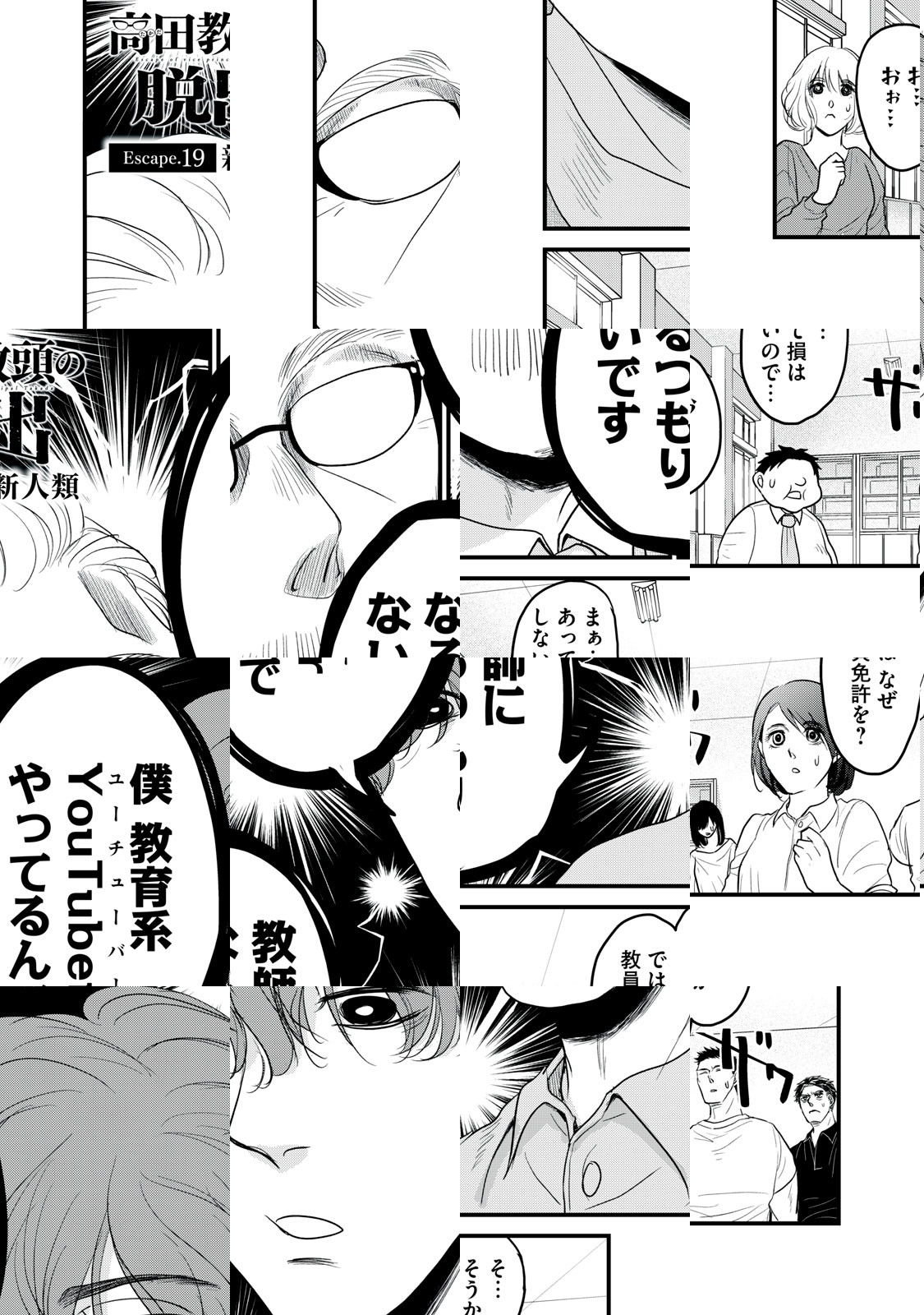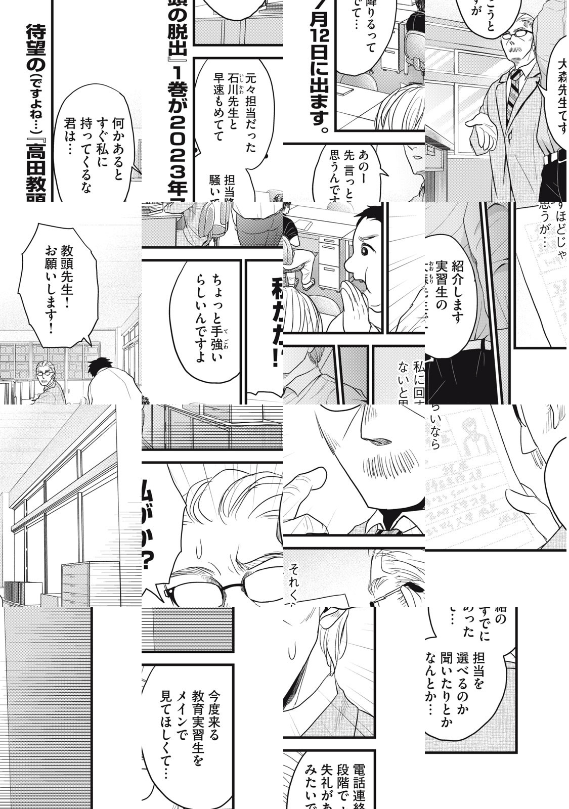 長い人生には、数えきれないくらいの窮地が訪れる。だからこそ、時には「逃げる」ことも大切だ…公立高校の教頭兼生活指導を務める高田一徹の日常も、中間管理職ならではのピンチの連続。真面目一徹な生き方に自負を持つ高田教頭は、自分なりのやり方でそこを切り抜けようとするが、ここから始まる「負の連鎖」が、職員室を盛り上げて、もとい騒がせてしまうことに…というようなギャグ漫画です!