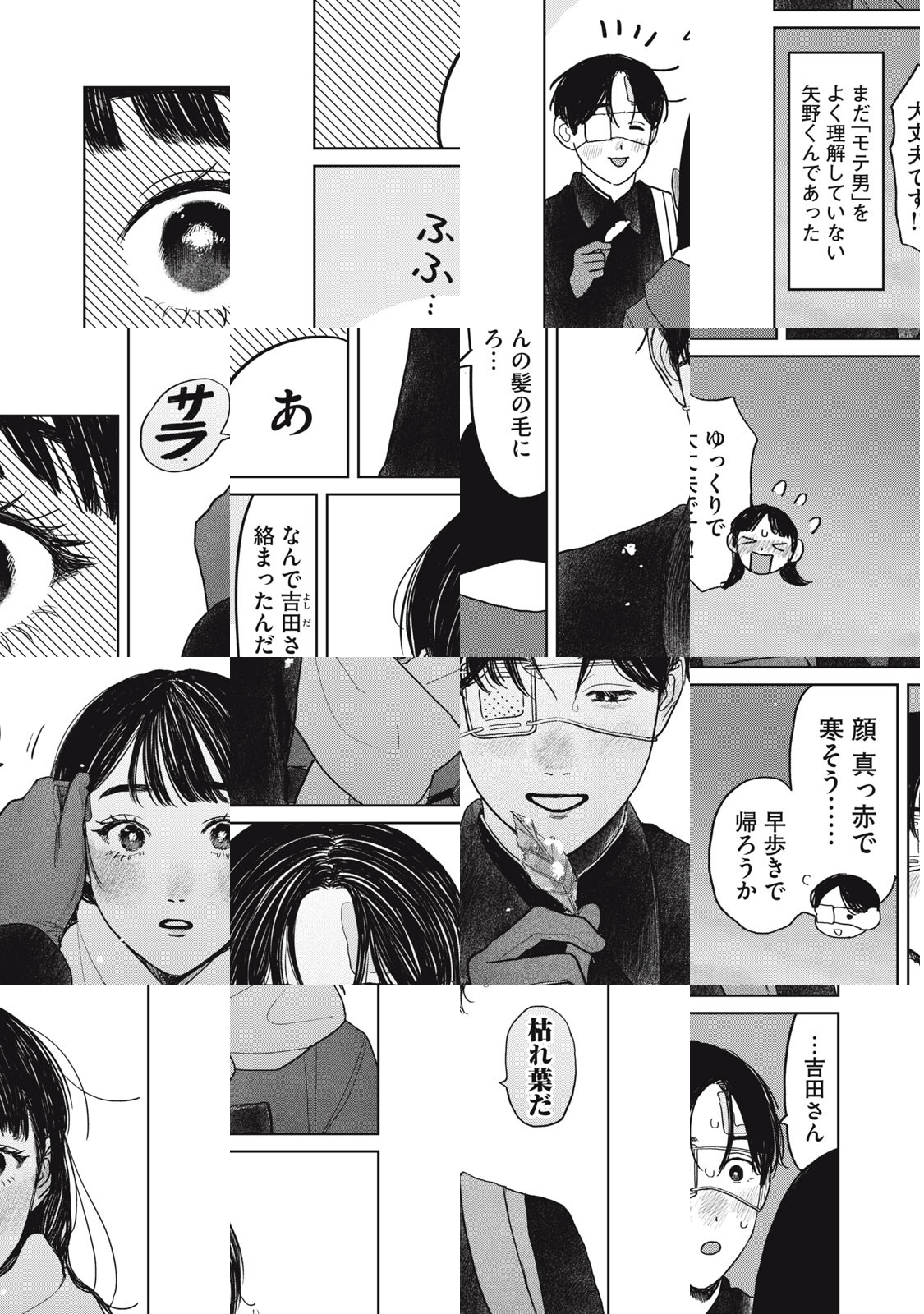 吉田さんは、人よりちょっと心配性なクラスの委員長。最近のもっぱらの心配事は、同じクラスになった矢野くんが、なぜか毎日大ケガをして学校にやってくること。ありとあらゆるケガをする矢野くんから、目が離せない!手当がしたくてたまらない!ケガまみれ男子と心配性女子による、日常系ラブコメディー!