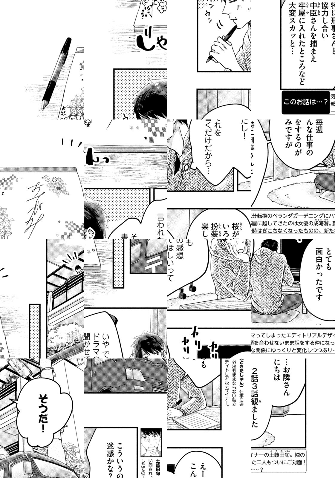 フリーのエディトリアルデザイナー・土岐田旬は、仕事に追われ部屋に籠りっぱなしの毎日。癒やしを求めてベランダガーデニングにハマるように。そんなある日、隣にちょっと変わった天然系の女性が引っ越してきた。ふとした出来事から、お互いの顔も知らぬままベランダの隔壁越しに話をするようになる二人。実は隣の女性は新進俳優・成海游なのだが……。ベランダとグリーンが繋ぐ隔壁越しの二人は?